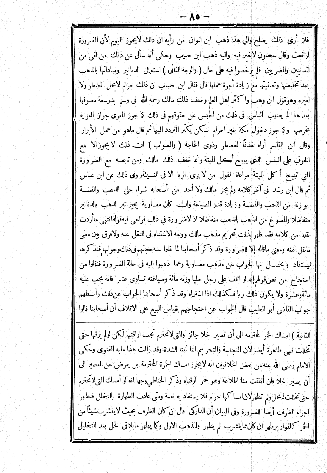 الثانية) امساك الخمر المحترمه إلى أن تصير خلا جائز والتى لا تحترم تجب اراقتها لكن لو لم يرقها حتى