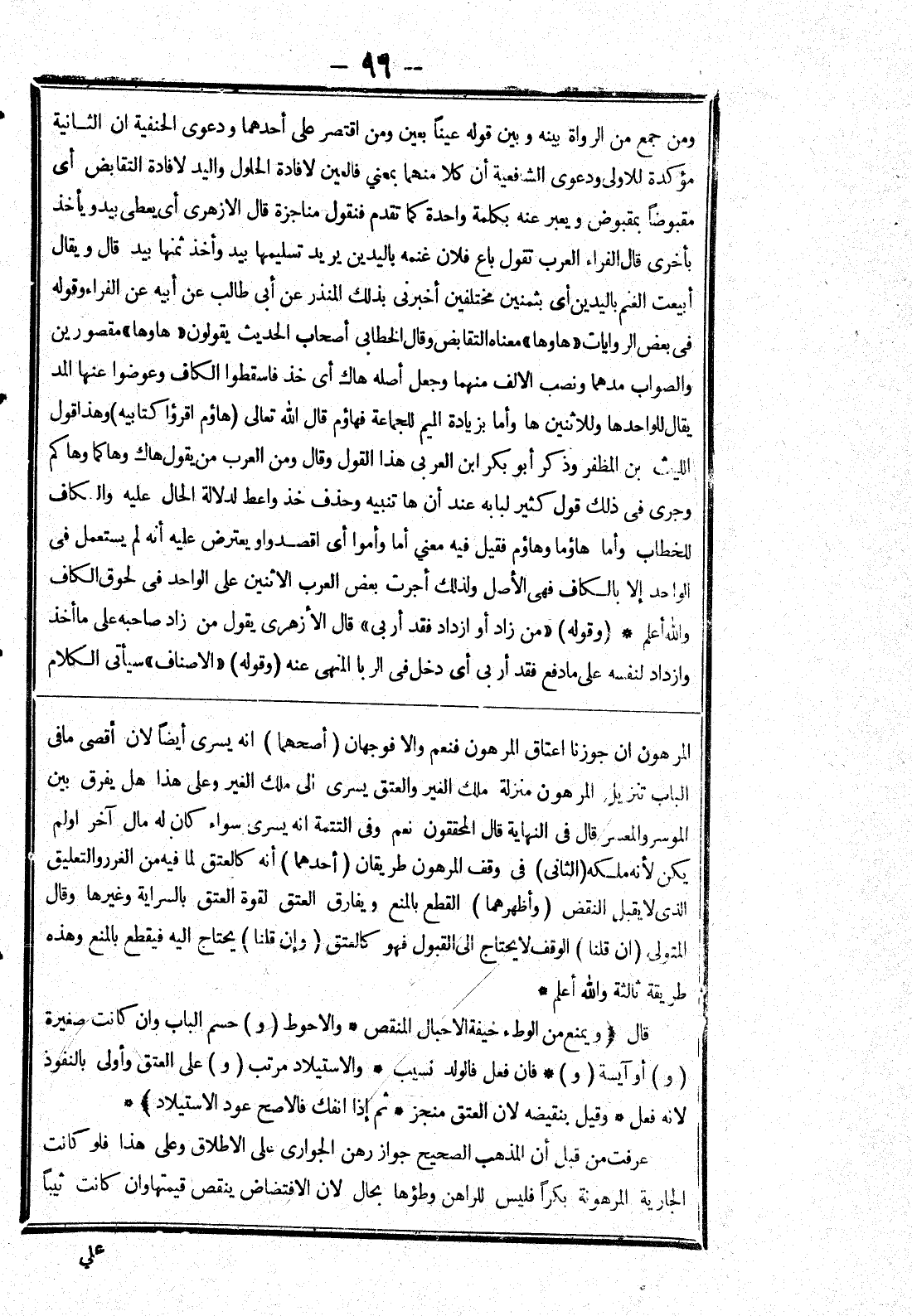 الموسر والمعسر قال في النهاية قال المحققون نعم وفى التتمة انه يسرى سواء كان له مال آخر اولم يكن لانه ملكه (الثاني) في وقف المرهون طريقان (أحدهما) أنه كالعتق لما فيه من الغرر والتعليق الذى لا يقبل النقض (وأظهرهما) القطع بالمنع ويفارق العتق لقوة العتق بالسراية وغيرها وقال المتولي (ان قلنا) الوقف لا يحتاج إلى القبول فهو كالعتق (وإن قلنا) يحتاج إليه فيعتق بالمنع وهذه طريقة ثالثة والله أعلم * قال (ويمنع من الوطئ خيفة الاحبال المنقص * والاحوط (و) حسم الباب وان كانت صغيرة (و) أو آيسة (و) * فان فعل فالولد نسيب * والاستيلاد مرتب (و) على العتق وأولى بالنفوذ لانه فعل * وقيل بنقيضه لان العتق منجز * ثم إذا انفك فالاصح عود الاستيلاد) * عرفت من قبل أن المذهب الصحيح جواز رهن الجوارى على الاطلاق وعلى هذا فلو كانت الجارية المرهونة بكرا فليس للراهن وطؤها بحال لان الافتضاض ينقص قيمتها وان كانت ثيبا