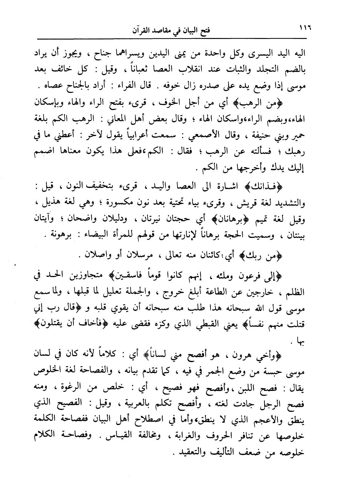 (فذانك) إشارة إلى العصا واليد، قرئ بتخفيف النون، قيل: والتشديد لغة قريش، وقرئ بياء تحتية بعد نون مكسورة؛ وهي لغة هذيل، وقيل لغة تميم (برهانان) أي حجتان نيرتان، ودليلان واضحان؛ وآيتان بينتان، وسميت الحجة برهاناً لإنارتها من قولهم للمرأة البيضاء: برهونة. (من ربك) أي: كائنان منه تعالى، مرسلان أو واصلان.