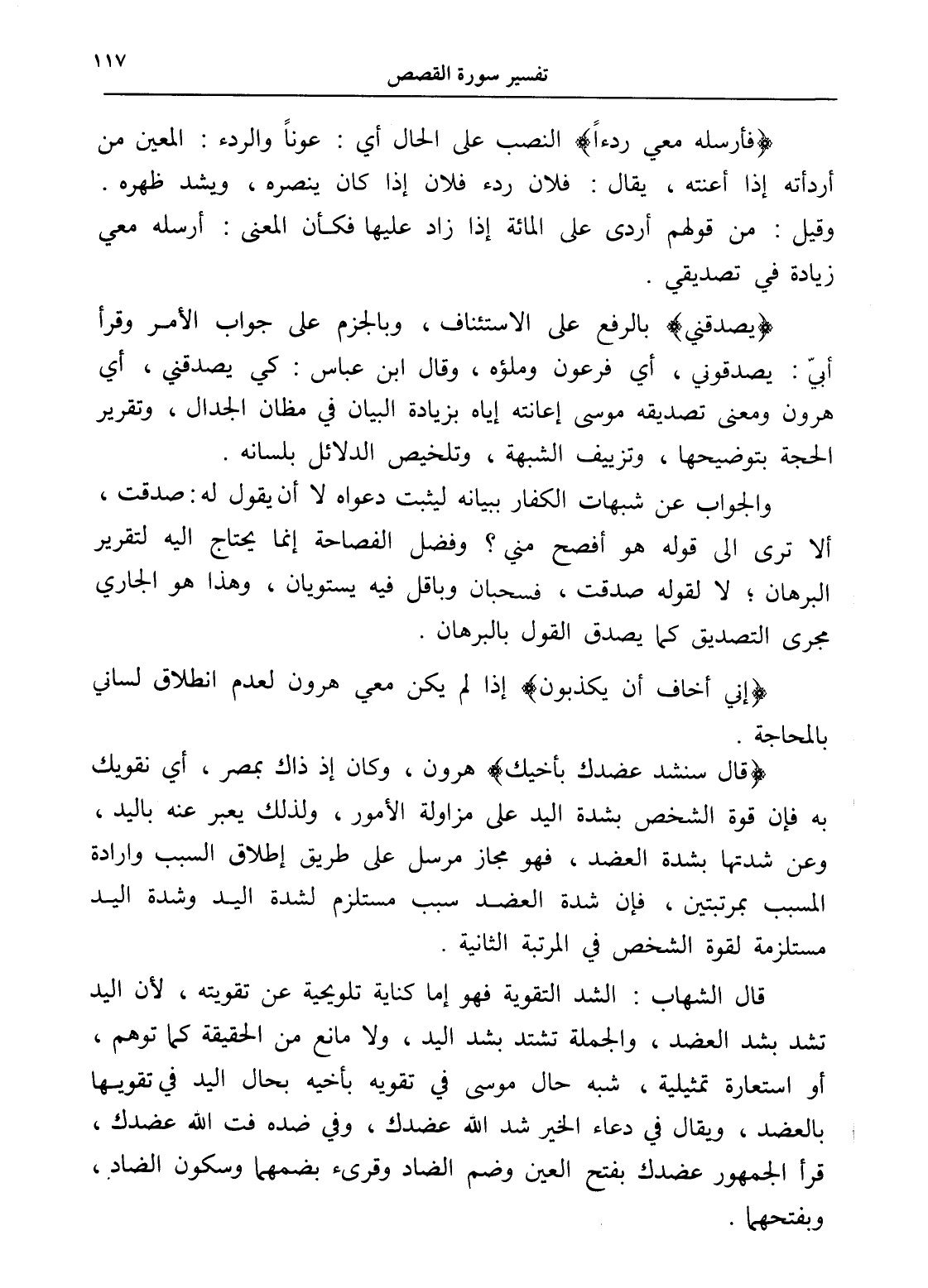 والجواب عن شبهات الكفار ببيانه ليثبت دعواه لا أن يقول له: صدقت، ألا ترى إلى قوله هو أفصح مني؟ وفضل الفصاحة إنما يحتاج إليه لتقرير البرهان؛ لا لقوله صدقت، حبان وباقل فيه يستويان، وهذا هو الجاري مجرى التصديق كما يصدق القول بالبرهان.