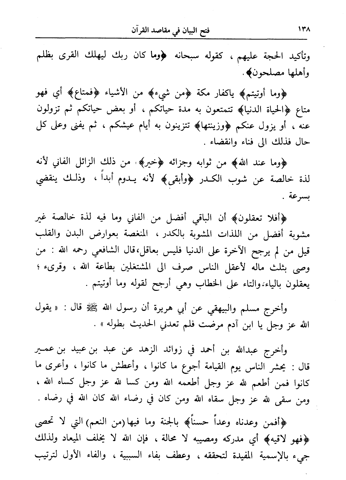 (وما عند الله) من ثوابه وجزائه (خير) من ذلك الزائل الفاني لأنه لذة خالصة عن شوب الكدر (وأبقى) لأنه يدوم أبداً، وذلك ينقضي بسرعة.