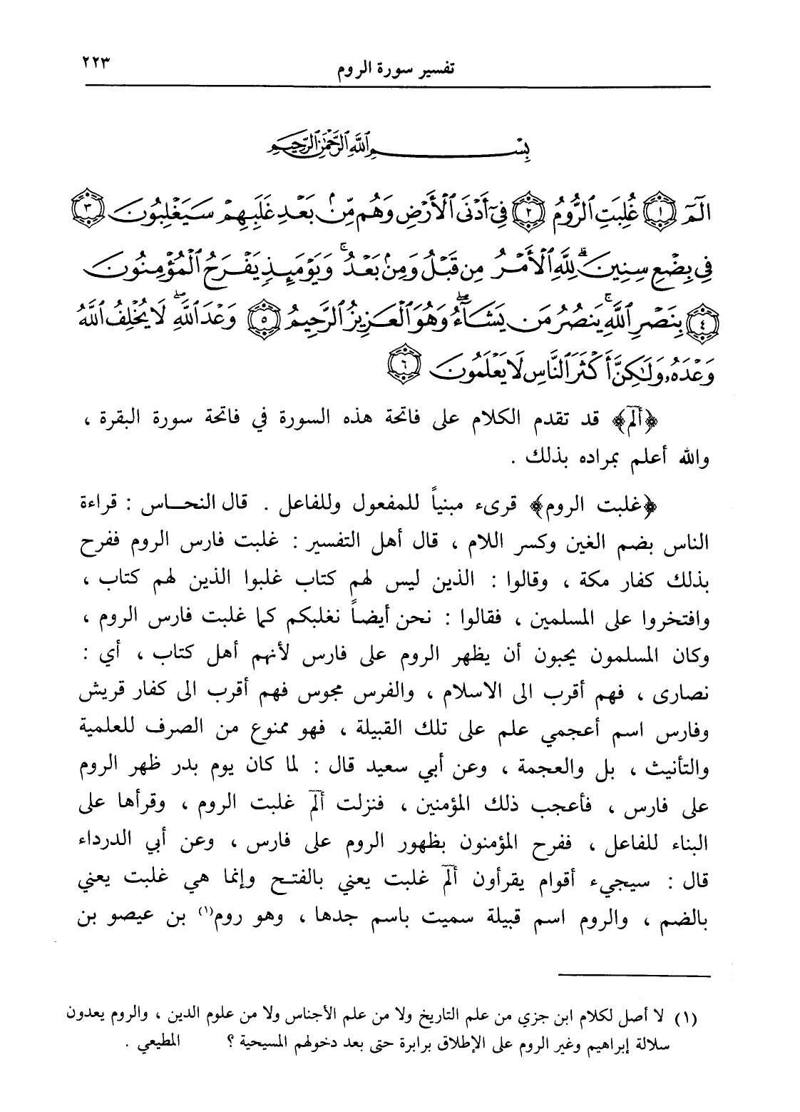 (¬1) لا أصل لكلام ابن جزي من علم التاريخ ولا من علم الأجناس ولا من علوم الدين، والروم يعدون سلالة إبراهيم وغير الروم على الإطلاق برابرة حتى بعد دخولهم المسيحية؟ المطيعي.