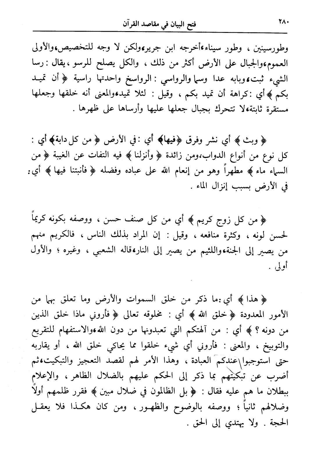 (هذا) أي: ما ذكر من خلق السماوات والأرض وما تعلق بهما من الأمور المعدودة (خلق الله) أي: مخلوقه تعالى (فأروني ماذا خلق الذين من دونه)؟ أي: من آلهتكم التي تعبدونها من دون الله، والاستفهام للتقريع والتوبيخ، والمعنى: فأروني أي شيء خلقوا مما يحاكي خلق الله، أو يقاربه حتى استوجبوا عندكم العبادة، وهذا الأمر لهم لقصد التعجيز والتبكيت، ثم أضرب عن تبكيتهم بما ذكر إلى الحكم عليهم بالضلال الظاهر، والإعلام ببطلان ما هم عليه فقال: (بل الظالمون في ضلال مبين) فقرر ظلمهم أولاً وضلالهم ثانياً؛ ووصفه بالوضوح والظهور، ومن كان هكذا فلا يعقل الحجة. ولا يهتدي إلى الحق.