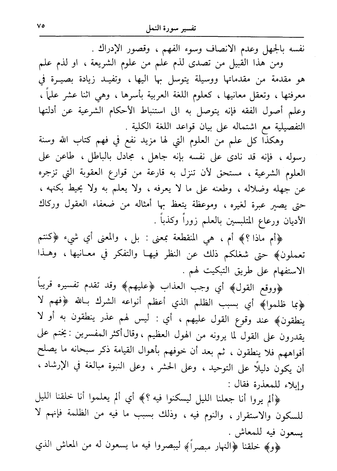 وهكذا كل علم من العلوم التي لها مزيد نفع في فهم كتاب الله وسنة رسوله، فإنه قد نادى على نفسه بإنه جاهل، مجادل بالباطل، طاعن على العلوم الشرعية، مستحق لأن تنزل به قارعة من قوازع العقوبة التي تزجره عن جهله وضلاله، وطعنه على ما لا يعرفه، ولا يعلم به ولا يحيط بكنهه، حتى يصير عبرة لغيره، وموعظة يتعظ بها أمثاله من ضعفاء العقول وركاك الأديان ورعاع المتلبسين بالعلم زوراً وكذباً.