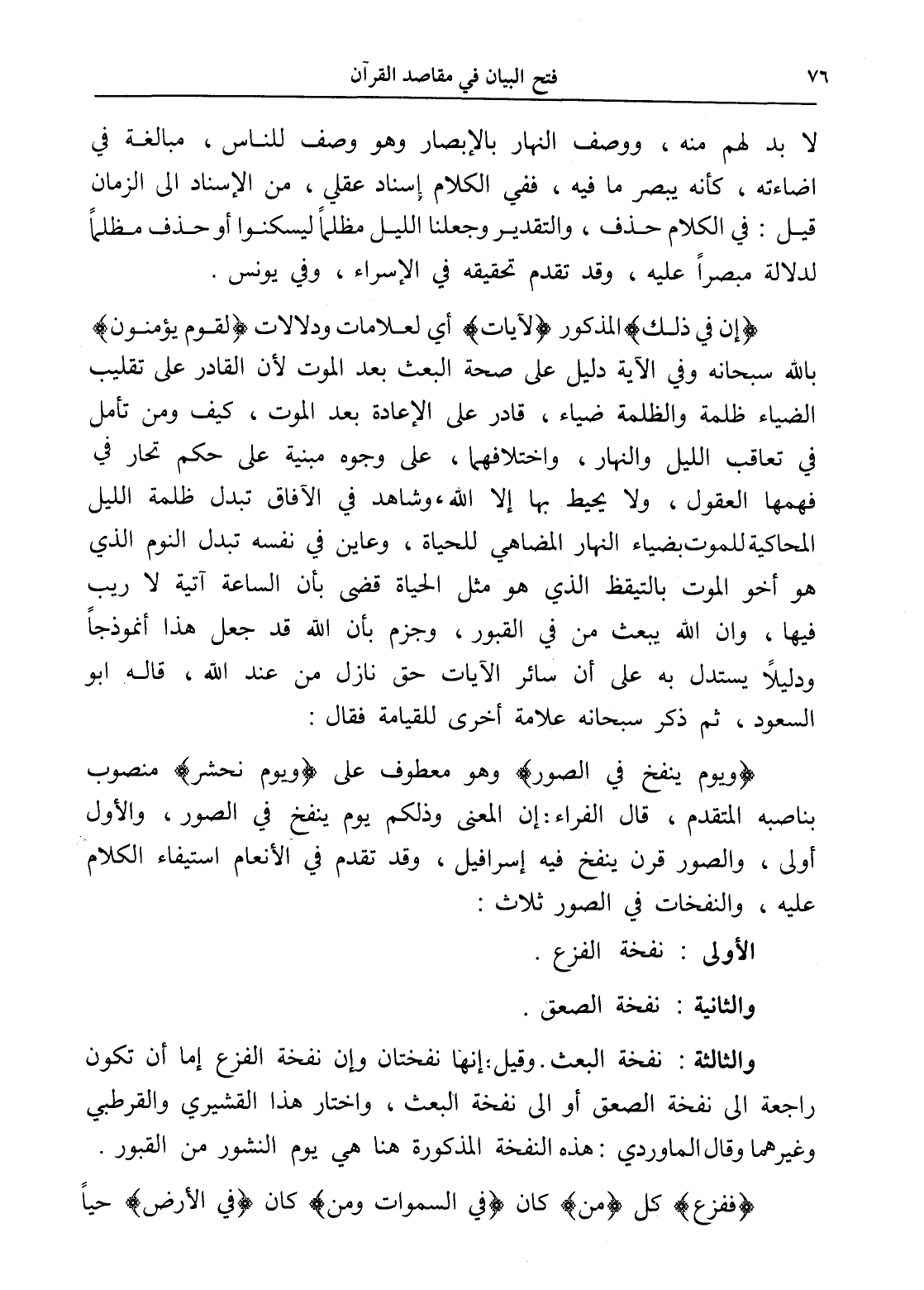 والثالثة: نفخة البعث. وقيل: إنها نفختان وإن نفخة الفزع إما أن تكون راجعة إلى نفخة الصعق أو إلى نفخة البعث، واختار هذا القشيري والقرطبي وغيرهما وقال الماوردي: هذه النفخة المذكورة هنا هي يوم النشور من القبور.