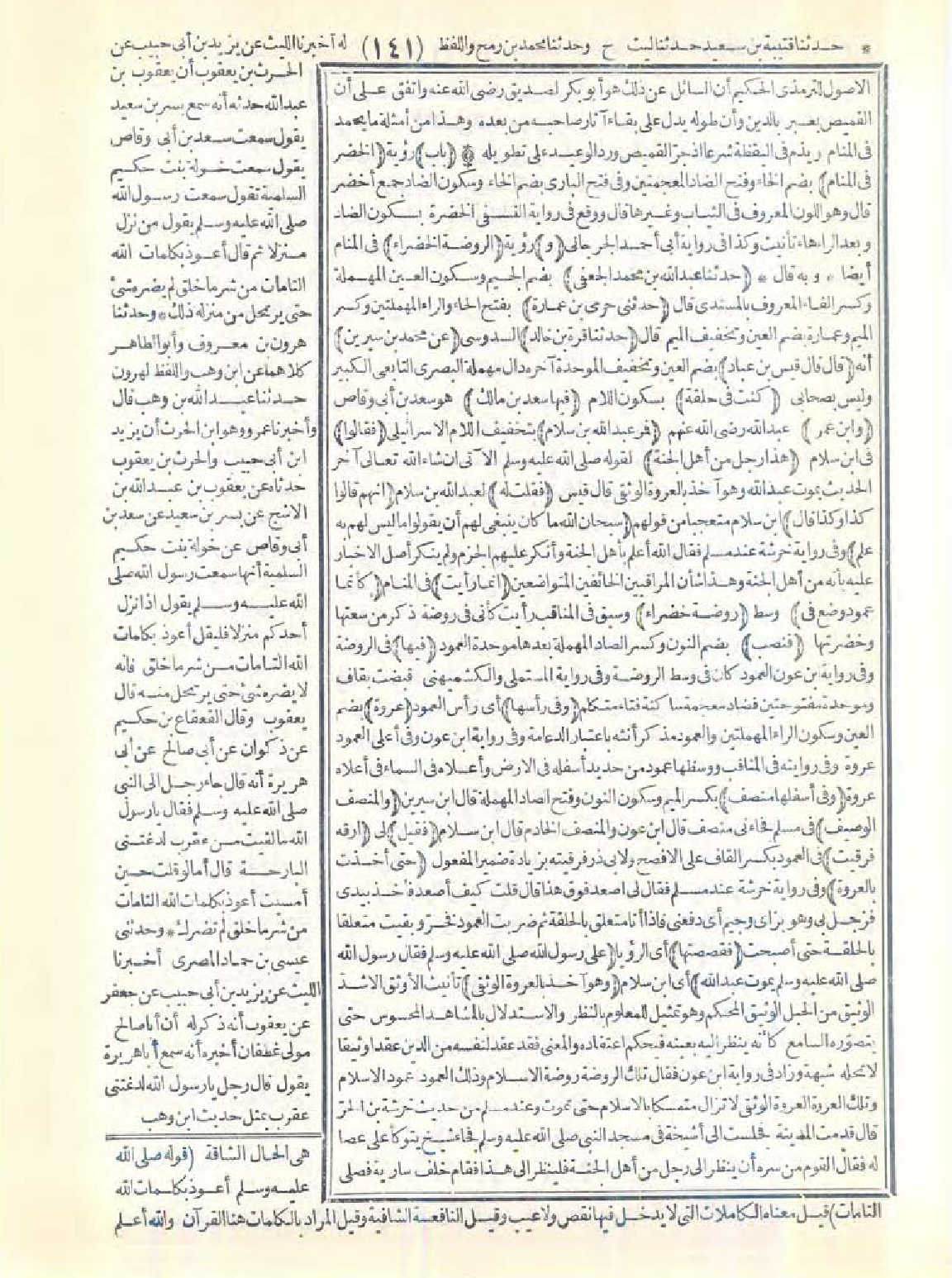 (باب) رؤية (الخضر في المنام) بضم الخاء وفتح الضاد المعجمتين وفي فتح الباري بضم الخاء وسكون الضاد جمع أخضر قال: وهو اللون المعروف في الثياب وغيرها. قال: ووقع في رواية النسفيّ الخضرة بسكون الضاد وبعد الراء هاء تأنيث وكذا في رواية أبي أحمد الجرجاني (و) رؤية (الروضة الخضراء) في المنام أيضًا.