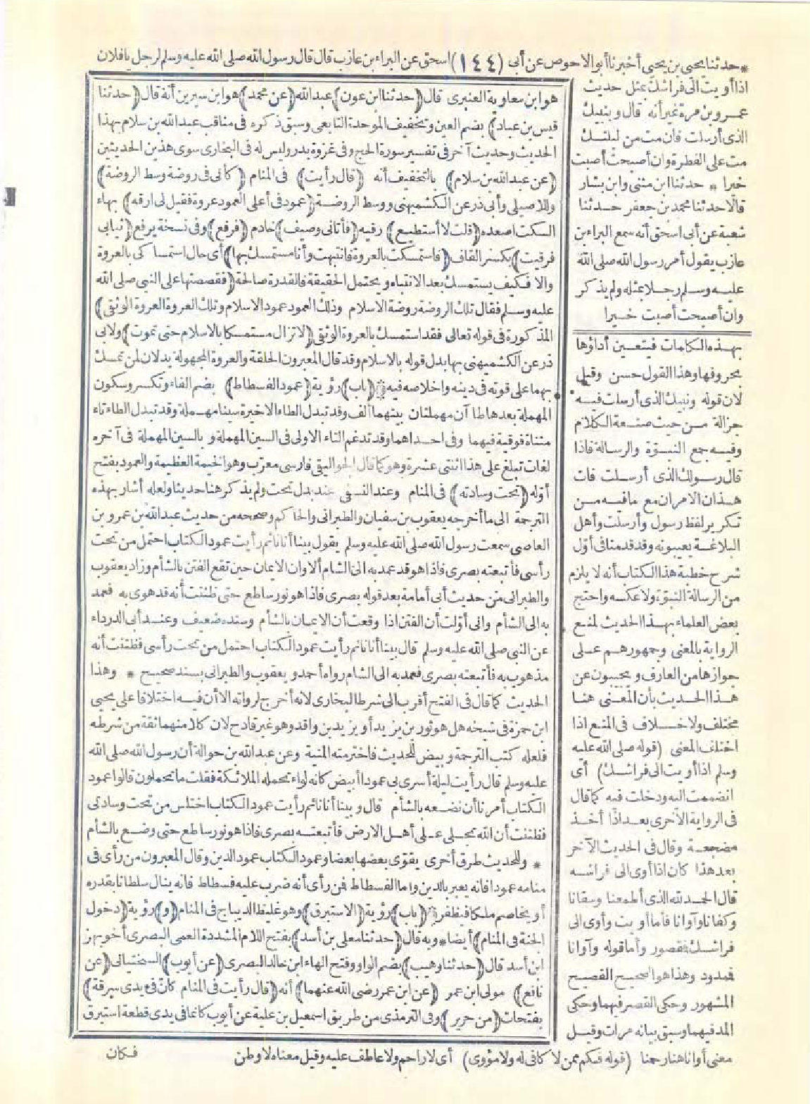 مذهوب به فأتبعته بصري فعمد به إلى الشأم" رواه أحمد ويعقوب والطبراني بسند صحيح وهذا الحديث كما قال في الفتح أقرب إلى شرط البخاري لأنه أخرج لرواته إلا أن فيه اختلافًا على يحيى بن حمزة في شيخه هل هو ثور بن يزيد أو يزيد بن واقد وهو غير قادح لأن كلاًّ منهما ثقة من شرطه فلعله كتب الترجمة وبيض للحديث فاخترمته المنية، وعن عبد الله بن حوالة أن رسول الله -صَلَّى اللَّهُ عَلَيْهِ وَسَلَّمَ- قال: رأيت ليلة أسري بي عمودًا أبيض كأنه لواء تحمله الملائكة فقلت: ما تحملون؟ قالوا: عمود الكتاب أمرنا أن نضعه بالشأم. قال: وبينا أنا نائم رأيت عمود الكتاب اختلس من تحت وسادتي فظننت أن الله تجلى على أهل الأرض فأتبعته بصري فإذا هو نور ساطع حتى وضع بالشأم.