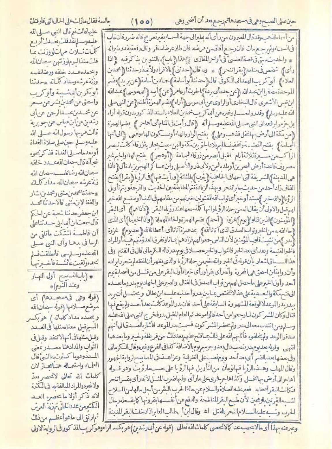 وقوله: بعد يوم بدر بنصب دال بعد وجر ميم يوم بالإضافة كذا في الفرع وغيره، وقال الكرماني: وفي بعضها بعد بالضم أي بعد أُحد ويوم نصب على الظرفية، وعزا هذه في المصابيح لرواية الجمهور، وقال المهلب: وهذه الرؤيا فيها نوعان من التأويل فيها الرؤيا على حسب ما رئيت وهو قوله أهاجر إلى أرض بها نخل وكذا هاجر فجرى على ما رأى وفيها ضرب المثل لأنه رأى بقرًا تنحر فكانت البقر أصحابه فعبر عليه الصلاة والسلام عن حالة الحرب بالبقر من أجل مالها من السلاح لشبه القرنين بالرمحين لأن طبع البقر المناطحة والدفع عن أنفسها بقرونها كما يفعله رجال الحرب وشبه عليه السلام النحر بالقتل اهـ.