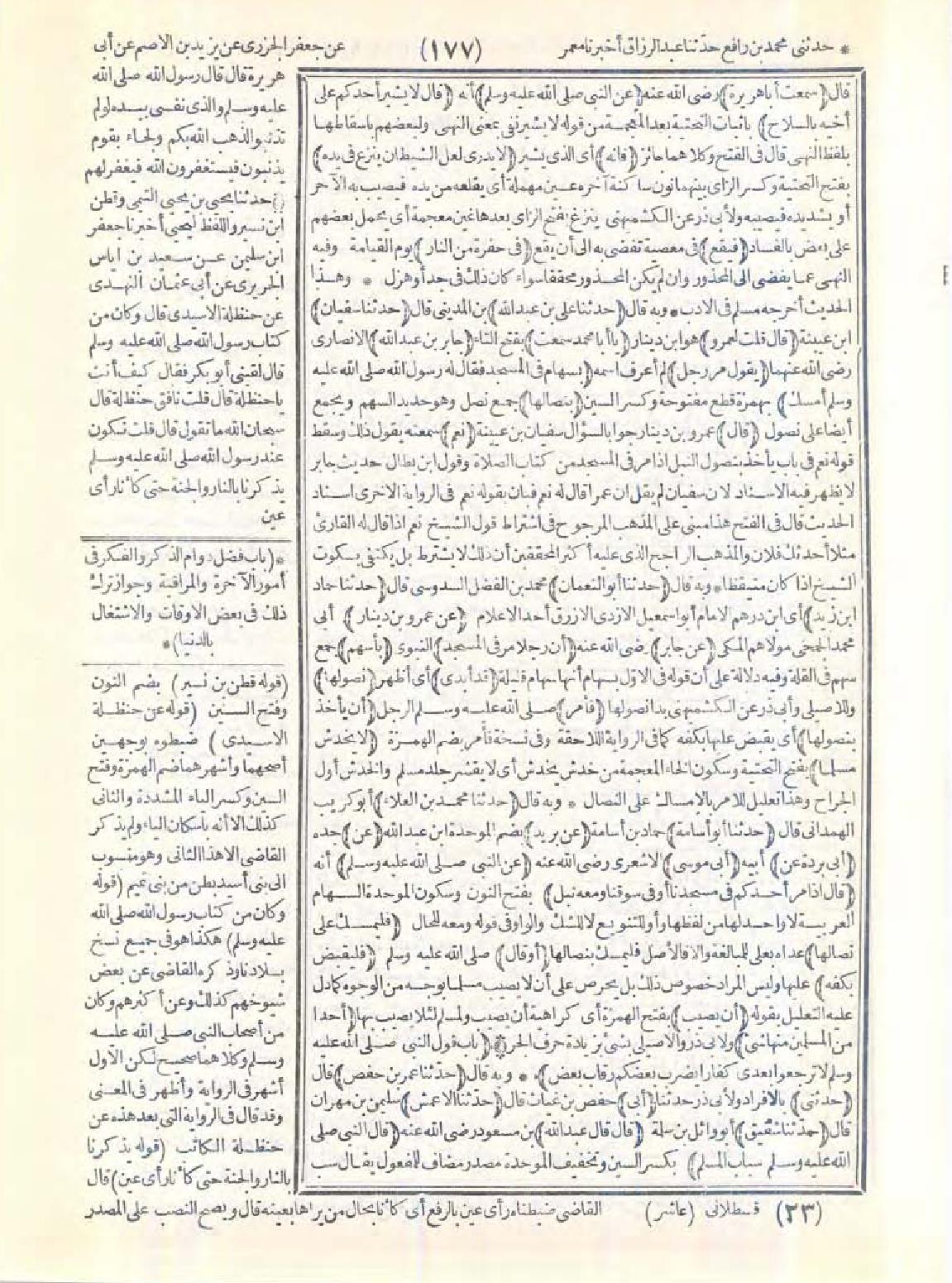 7073 - حَدَّثَنَا عَلِىُّ بْنُ عَبْدِ اللَّهِ، حَدَّثَنَا سُفْيَانُ، قَالَ: قُلْتُ لِعَمْرٍو يَا أَبَا مُحَمَّدٍ سَمِعْتَ جَابِرَ بْنَ عَبْدِ اللَّهِ يَقُولُ: مَرَّ رَجُلٌ بِسِهَامٍ فِى الْمَسْجِدِ فَقَالَ لَهُ رَسُولُ اللَّهِ -صَلَّى اللَّهُ عَلَيْهِ وَسَلَّمَ-: «أَمْسِكْ بِنِصَالِهَا» قَالَ: نَعَمْ.