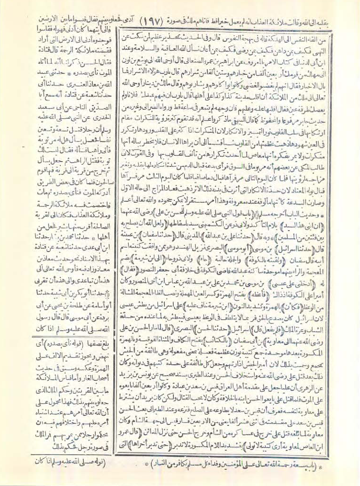 وعند ابن أبي الدنيا في كتاب الأمر بالمعروف عن إبراهيم بن عمرو الصنعاني قال: أوحى الله إلى يوشع بن نون أني مهلك من قومك أربعين ألفًا من خيارهم وستين ألفًا من شرارهم قال: يا رب هؤلاء الأشرار فما بال الأخيار؟ فقال: إنهم لم يغضبوا لغضبي وكانوا يواكلوهم ويشاربوهم، وقال مالك بن دينار: أوحى الله تعالى إلى ملك من الملائكة أن اقلب مدينة كذا وكذا على أهلها قال: يا رب إن فيهم عبدك فلانًا ولم يعصك طرفة عين فقال اقلبها عليه وعليهم فإن وجهه لم يتمعر فيّ ساعة قط. ورواه الطبراني وغيره من حديث جابر مرفوعًا والمحفوظ كما قال البيهقي ما ذكر، وأعلم أنه قد تقوم كثرة رؤية المنكرات مقام ارتكابها في سلب القلوب نور التمييز والإنكار لأن المنكرات إذا كثر على القلب ورودها وتكرر في العين شهودها ذهبت عظمتها من القلوب شيئًا فشيئًا إلى أن يراها الإنسان فلا يخطر بباله أنها منكرات ولا يمر بفكره أنها معاصٍ لما أحدث تكرارها من تألف القلوب بها.