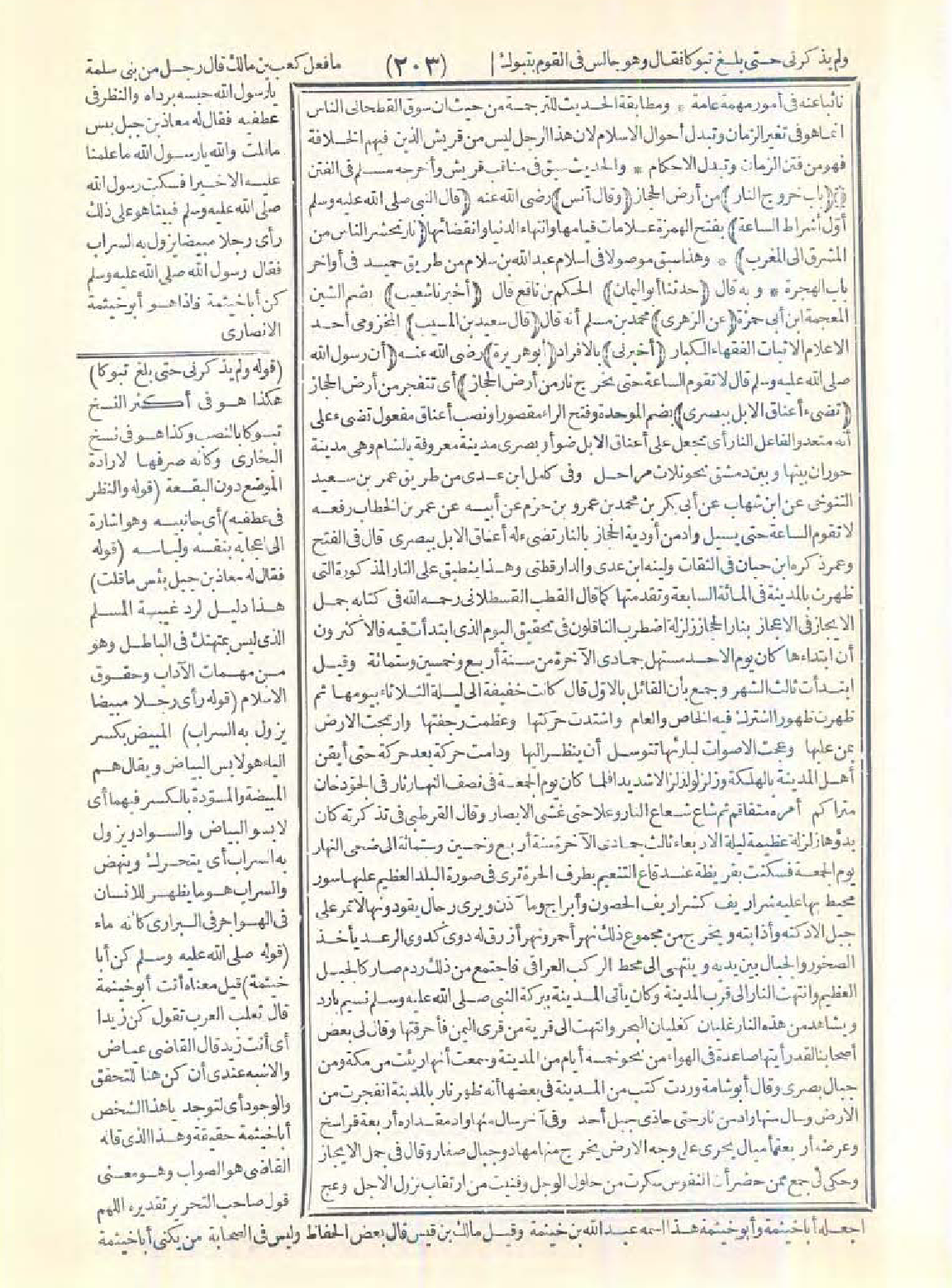 (لا تقوم الساعة حتى تخرج نار من أرض الحجاز) أي تتفجر من أرض الحجاز (تضيء أعناق الإبل ببصرى) بضم الموحدة وفتح الراء مقصورًا ونصب أعناق مفعول تضيء على أنه متعدٍّ