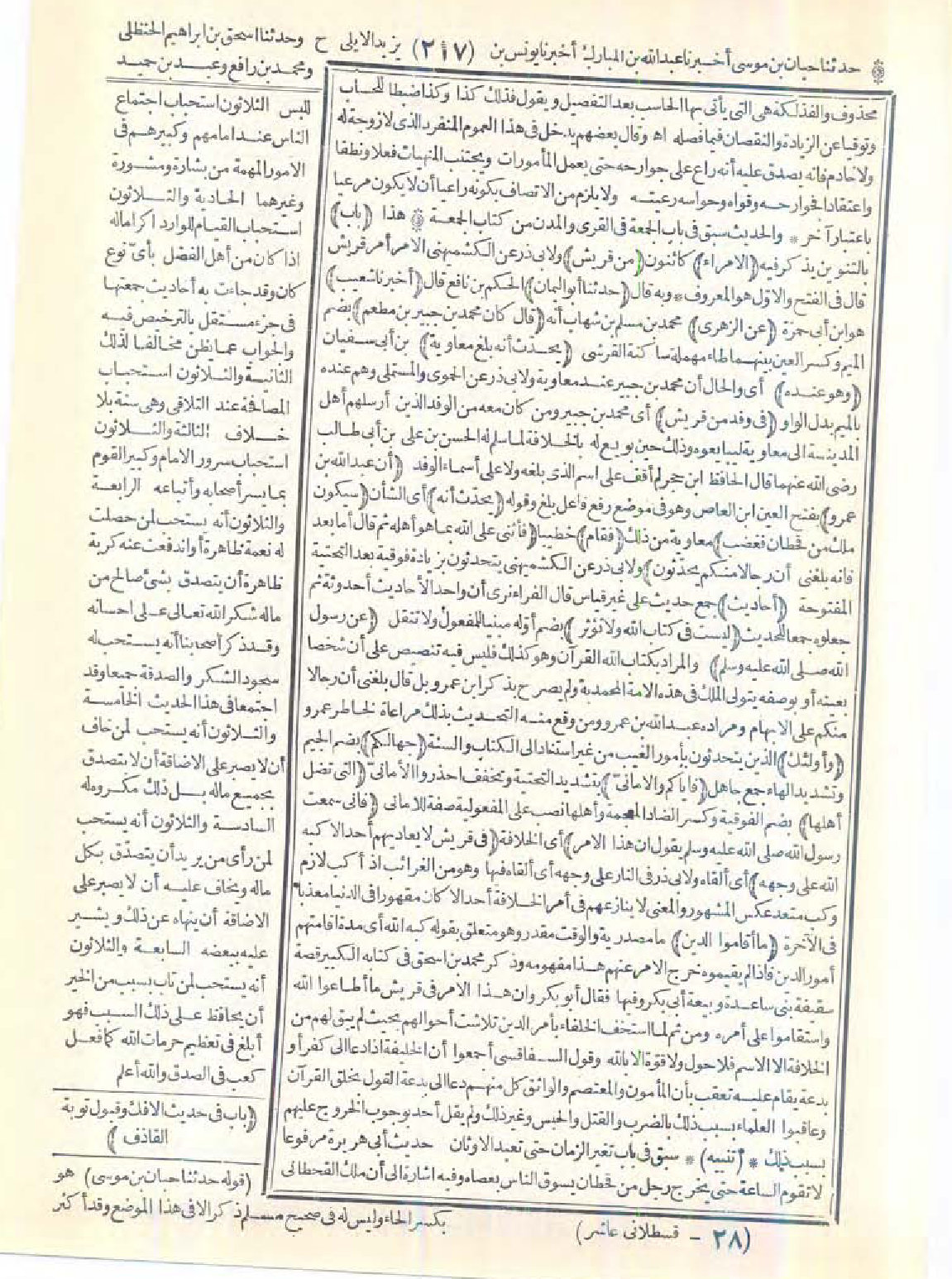 7139 - حَدَّثَنَا أَبُو الْيَمَانِ، أَخْبَرَنَا شُعَيْبٌ، عَنِ الزُّهْرِىِّ قَالَ: كَانَ مُحَمَّدُ بْنُ جُبَيْرِ بْنِ مُطْعِمٍ يُحَدِّثُ أَنَّهُ بَلَغَ مُعَاوِيَةَ وَهْوَ عِنْدَهُ فِى وَفْدٍ مِنْ قُرَيْشٍ أَنَّ عَبْدَ اللَّهِ بْنَ عَمْرٍو يُحَدِّثُ أَنَّهُ سَيَكُونُ مَلِكٌ مِنْ قَحْطَانَ فَغَضِبَ فَقَامَ فَأَثْنَى عَلَى اللَّهِ بِمَا هُوَ أَهْلُهُ ثُمَّ قَالَ: أَمَّا بَعْدُ فَإِنَّهُ بَلَغَنِى أَنَّ رِجَالاً مِنْكُمْ يُحَدِّثُونَ أَحَادِيثَ لَيْسَتْ فِى كِتَابِ اللَّهِ، وَلاَ تُؤْثَرُ عَنْ رَسُولِ اللَّهِ -صَلَّى اللَّهُ عَلَيْهِ وَسَلَّمَ- وَأُولَئِكَ جُهَّالُكُمْ فَإِيَّاكُمْ وَالأَمَانِىَّ الَّتِى تُضِلُّ أَهْلَهَا، فَإِنِّى سَمِعْتُ رَسُولَ اللَّهِ -صَلَّى اللَّهُ عَلَيْهِ وَسَلَّمَ- يَقُولُ: «إِنَّ هَذَا الأَمْرَ فِى قُرَيْشٍ لاَ يُعَادِيهِمْ أَحَدٌ إِلاَّ كَبَّهُ اللَّهُ عَلَى وَجْهِهِ مَا أَقَامُوا الدِّينَ». تَابَعَهُ نُعَيْمٌ عَنِ ابْنِ الْمُبَارَكِ، عَنْ مَعْمَرٍ، عَنِ الزُّهْرِىِّ، عَنْ مُحَمَّدِ بْنِ جُبَيْرٍ.