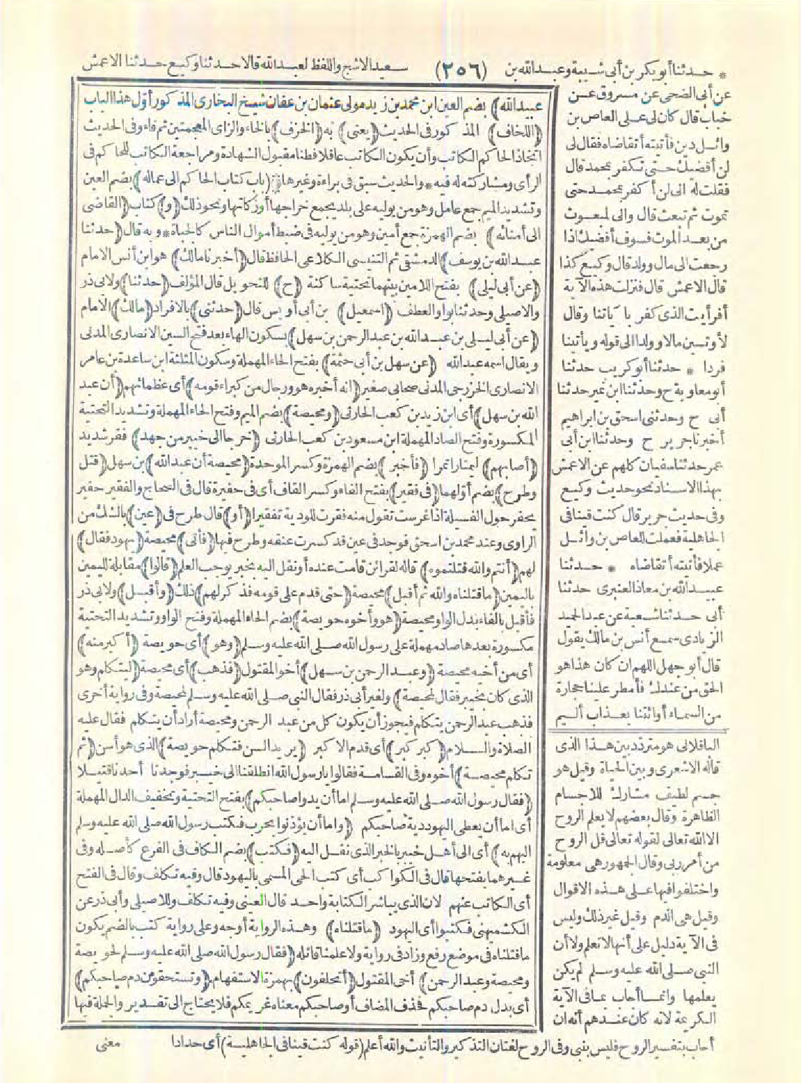 (حدّثنا) ولأبي ذر والأصيلي وحدّثنا بواو العطف (إسماعيل) بن أبي أويس قال: (حدّثني) بالإفراد (مالك) الإمام (عن أبي ليلى بن عبد الله بن عبد الرحمن بن سهل) بسكون الهاء بعد فتح السين الأنصاري المدني ويقال اسمه عبد الله (عن سهل بن أبي حثمة) بفتح الحاء المهملة وسكون المثلثة ابن ساعدة بن عامر الأنصاري الخزرجي المدني صحابي صغير (أنه أخبره هو ورجال من كبراء قومه) أي عظمائهم (أن عبد الله بن سهل) أي ابن زيد بن كعب الحارثي (ومحيصة) بضم الميم وفتح الحاء المهملة وتشديد التحتية المكسورة وفتح الصاد المهملة ابن مسعود بن كعب الحارثي (خرجا إلى خيبر من جهد) فقر شديد (أصابهم) ليمتارا تمرًا (فأخبر) بضم الهمزة وكسر الموحدة (محيصة أن عبد الله) بن سهل (قتل وطرح) بضم أولهما (في فقير) بفتح الفاء وكسر القاف أي في حفيرة. قال في الصحاح: والفقير حفير يحفر حول الفسيلة إذا غرست تقول منه فقرت للودية تفقيرًا (أو) قال: طرح في (عين) بالشك من الراوي. وعند محمد بن إسحاق فوجد في عين قد كسرت عنقه وطرح فيها (فأتى) محيصة (يهود فقال) لهم: (أنتم والله قتلتموه) قاله لقرائن قامت عنده أو نقل إليه بخبر يوجب العلم (قالوا): مقابلة لليمين باليمين (ما قتلناه والله ثم أقبل) محيصة (حتى قدم على قومه فذكر لهم) ذلك (وأقبل) ولأبي ذرّ فأقبل بالفاء بدل الواو محيصة (هو وأخوه حويصة) بضم الحاء المهملة وفتح الواو وتشديد التحتية مكسورة بعدها صاد مهملة على رسول الله -صَلَّى اللَّهُ عَلَيْهِ وَسَلَّمَ- (وهو) أي حويصة (أكبر منه) أي من أخيه محيصة (عبد الرحمن بن سهل) أخو المقتول (فذهب) أي محيصة (ليتكلم وهو الذي كان بخيبر فقال لمحيصة): ولغير أبي ذر فقال النبي -صَلَّى اللَّهُ عَلَيْهِ وَسَلَّمَ- لمحيصة في رواية أخرى فذهب عبد الرحمن يتكلم فيجوز أن يكون كل من عبد الرحمن ومحيصة أراد أن تكلم فقال عليه الصلاة والسلام: (كبر كبر) أي قدم الأكبر (يريد السن فتكلم حويصة) الذي هو أسن (ثم تكلم محيصة) أخوه وفي القسامة فقالوا: يا رسول الله انطلقنا إلى خيبر فوجدنا أحدنا قتيلاً (فقال رسول الله -صَلَّى اللَّهُ عَلَيْهِ وَسَلَّمَ-):