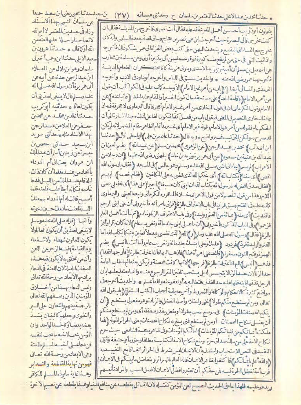 6835 - 6836 - حَدَّثَنَا عَاصِمُ بْنُ عَلِىٍّ، حَدَّثَنَا ابْنُ أَبِى ذِئْبٍ، عَنِ الزُّهْرِىِّ، عَنْ عُبَيْدِ اللَّهِ، عَنْ أَبِى هُرَيْرَةَ، وَزَيْدِ بْنِ خَالِدٍ أَنَّ رَجُلاً مِنَ الأَعْرَابِ جَاءَ إِلَى النَّبِيِّ -صَلَّى اللَّهُ عَلَيْهِ وَسَلَّمَ- وَهْوَ جَالِسٌ فَقَالَ: يَا رَسُولَ اللَّهِ اقْضِ بِكِتَابِ اللَّهِ فَقَامَ خَصْمُهُ فَقَالَ: صَدَقَ اقْضِ لَهُ يَا رَسُولَ اللَّهِ بِكِتَابِ اللَّهِ إِنَّ ابْنِى كَانَ عَسِيفًا عَلَى هَذَا فَزَنَى بِامْرَأَتِهِ فَأَخْبَرُونِى أَنَّ عَلَى ابْنِى الرَّجْمَ فَافْتَدَيْتُ بِمِائَةٍ مِنَ الْغَنَمِ وَوَلِيدَةٍ ثُمَّ سَأَلْتُ أَهْلَ الْعِلْمِ فَزَعَمُوا أَنَّ مَا عَلَى ابْنِى جَلْدُ مِائَةٍ وَتَغْرِيبُ عَامٍ فَقَالَ: «وَالَّذِى نَفْسِى بِيَدِهِ لأَقْضِيَنَّ بَيْنَكُمَا بِكِتَابِ اللَّهِ، أَمَّا الْغَنَمُ وَالْوَلِيدَةُ فَرَدٌّ عَلَيْكَ، وَعَلَى ابْنِكَ جَلْدُ مِائَةٍ وَتَغْرِيبُ عَامٍ وَأَمَّا أَنْتَ يَا أُنَيْسُ فَاغْدُ عَلَى امْرَأَةِ هَذَا فَارْجُمْهَا» فَغَدَا أُنَيْسٌ فَرَجَمَهَا.