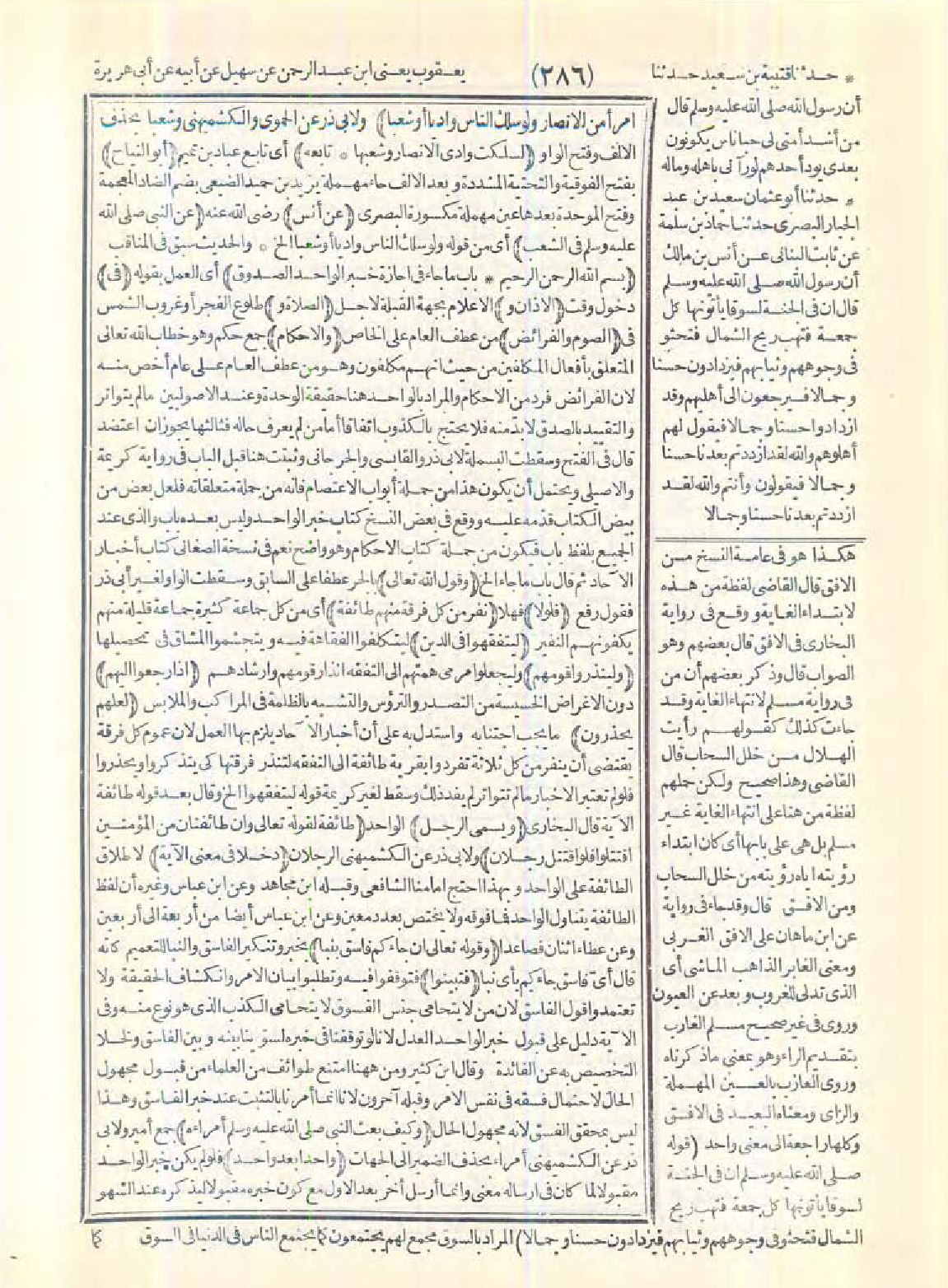 {فَلَوْلاَ نَفَرَ مِنْ كُلِّ فِرْقَةٍ مِنْهُمْ طَائِفَةٌ لِيَتَفَقَّهُوا فِى الدِّينِ وَلِيُنْذِرُوا قَوْمَهُمْ إِذَا رَجَعُوا إِلَيْهِمْ لَعَلَّهُمْ يَحْذَرُونَ} [التوبة: 122] وَيُسَمَّى الرَّجُلُ طَائِفَةً لِقَوْلِهِ تَعَالَى: {وَإِنْ طَائِفَتَانِ مِنَ الْمُؤْمِنِينَ اقْتَتَلُوا} [الحجرات: 9] فَلَوِ اقْتَتَلَ رَجُلاَنِ دَخَلَ فِى مَعْنَى الآيَةِ وَقَوْلُهُ تَعَالَى: {إِنْ جَاءَكُمْ فَاسِقٌ بِنَبَإٍ فَتَبَيَّنُوا} [الحجرات: 6] وَكَيْفَ بَعَثَ النَّبِىُّ -صَلَّى اللَّهُ عَلَيْهِ وَسَلَّمَ- أُمَرَاءَهُ وَاحِدًا بَعْدَ وَاحِدٍ، فَإِنْ سَهَا أَحَدٌ مِنْهُمْ رُدَّ إِلَى السُّنَّةِ.