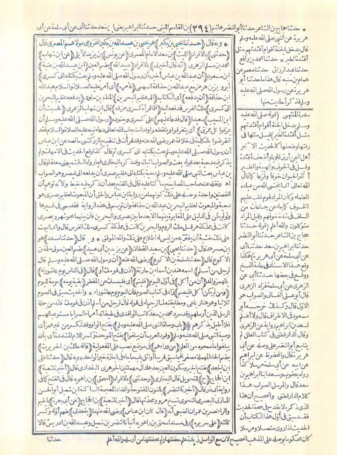 7264 - حَدَّثَنَا يَحْيَى بْنُ بُكَيْرٍ، حَدَّثَنِى اللَّيْثُ، عَنْ يُونُسَ، عَنِ ابْنِ شِهَابٍ أَنَّهُ قَالَ: أَخْبَرَنِى عُبَيْدُ اللَّهِ بْنُ عَبْدِ اللَّهِ بْنِ عُتْبَةَ أَنَّ عَبْدَ اللَّهِ بْنَ عَبَّاسٍ أَخْبَرَهُ أَنَّ رَسُولَ اللَّهِ -صَلَّى اللَّهُ عَلَيْهِ وَسَلَّمَ- بَعَثَ بِكِتَابِهِ إِلَى كِسْرَى، فَأَمَرَهُ أَنْ يَدْفَعَهُ إِلَى عَظِيمِ الْبَحْرَيْنِ، يَدْفَعُهُ عَظِيمُ الْبَحْرَيْنِ إِلَى كِسْرَى فَلَمَّا قَرَأَهُ كِسْرَى مَزَّقَهُ فَحَسِبْتُ أَنَّ ابْنَ الْمُسَيَّبِ قَالَ: فَدَعَا عَلَيْهِمْ رَسُولُ اللَّهِ -صَلَّى اللَّهُ عَلَيْهِ وَسَلَّمَ- أَنْ يُمَزَّقُوا كُلَّ مُمَزَّقٍ.