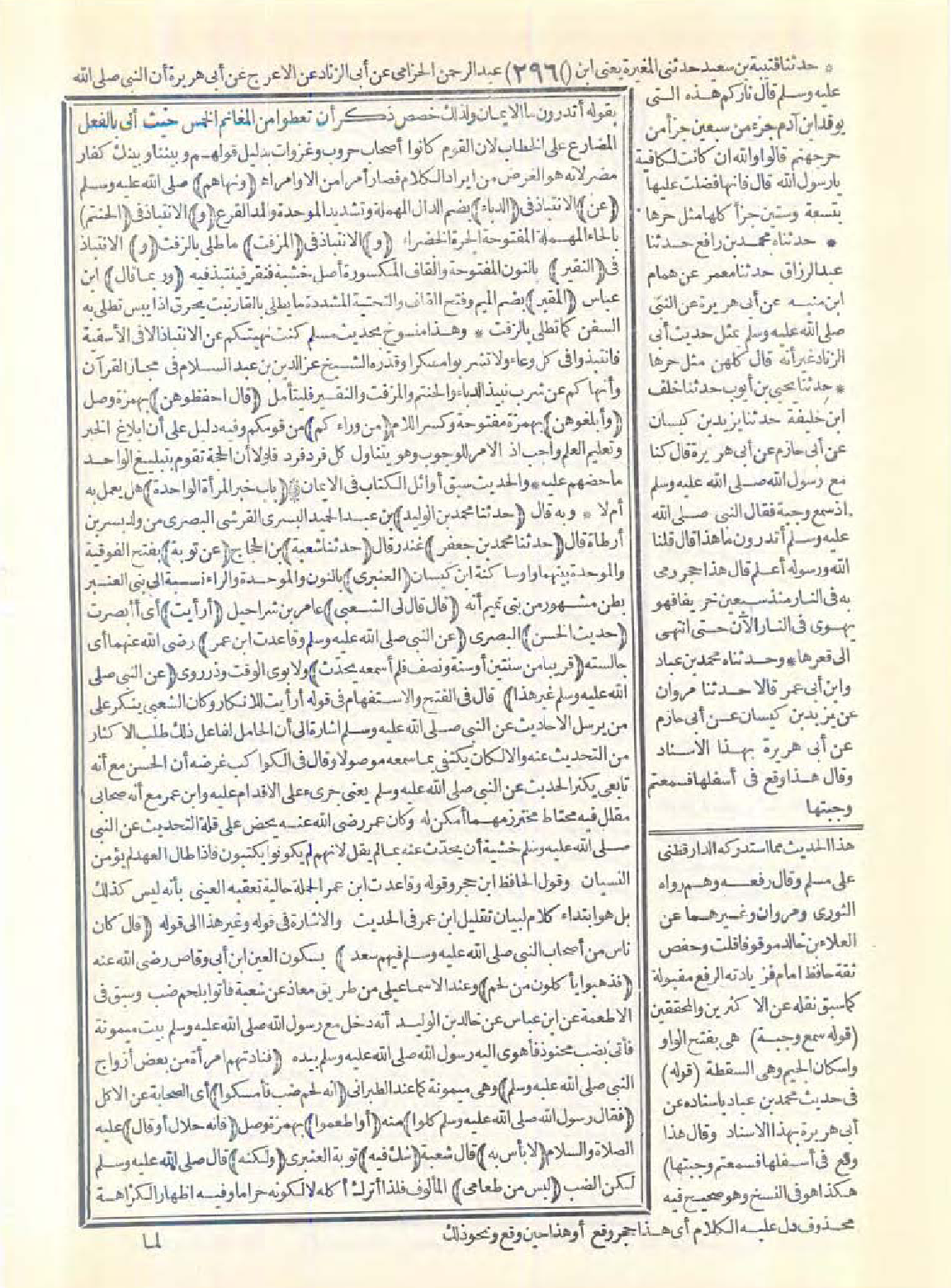 وبه قال: (حدّثنا محمد بن الوليد) بن عبد الحميد البسري القرشي البصري من ولد بسر بن أرطأة قال: (حدّثنا محمد بن جعفر) غندر قال: (حدّثنا شعبة) بن الحجاج (عن توبة) بفتح الفوقية والموحدة بينهما واو ساكنة ابن كيسان (العنبري) بالنون والموحدة والراء نسبة إلى بني العنبر بطن مشهور من بني تميم أنه (قال: قال لي الشعبي) عامر بن شراحيل: (أرأيت) أي أأبصرت (حديث الحسن) البصري (عن النبي -صَلَّى اللَّهُ عَلَيْهِ وَسَلَّمَ-، وقاعدت ابن عمر) -رضي الله عنهما- أي جالسته (قريبًا من سنتين أو سنة ونصف فلم أسمعه يحدّث) ولأبوي الوقت وذر روى (عن النبي -صَلَّى اللَّهُ عَلَيْهِ وَسَلَّمَ- غير هذا). قال في الفتح: والاستفهام في قوله أرأيت للإنكار، وكان الشعبي ينكر على من يرسل الأحاديث عن النبي -صَلَّى اللَّهُ عَلَيْهِ وَسَلَّمَ- إشارة إلى أن الحامل لفاعل ذلك طلب الإكثار من التحديث عنه وإلاّ لكان يكتفي بما سمعه موصولاً. وقال في الكواكب: غرضه أن الحسن مع أنه تابعي يكثر الحديث عن النبي -صَلَّى اللَّهُ عَلَيْهِ وَسَلَّمَ- يعني جريء على الإقدام عليه، وابن عمر مع أنه صحابي مقلّل فيه محتاط محترز مهما أمكن له، وكان عمر -رضي الله عنه- يحض على قلة التحديث عن النبي -صَلَّى اللَّهُ عَلَيْهِ وَسَلَّمَ- خشية أن يحدّث عنه بما لم يقل لأنهم لم يكونوا يكتبون، فإذا طال العهد لم يؤمن النسيان: وقول الحافظ ابن حجر وقوله وقاعدت ابن عمر الجملة حالية تعقبه العيني بأنه ليس كذلك بل هو ابتداء كلام لبيان تقليل ابن عمر في الحديث، والإشارة في قوله غير هذا إلى قوله (قال كان ناس من أصحاب النبي -صَلَّى اللَّهُ عَلَيْهِ وَسَلَّمَ- فيهم سعد)