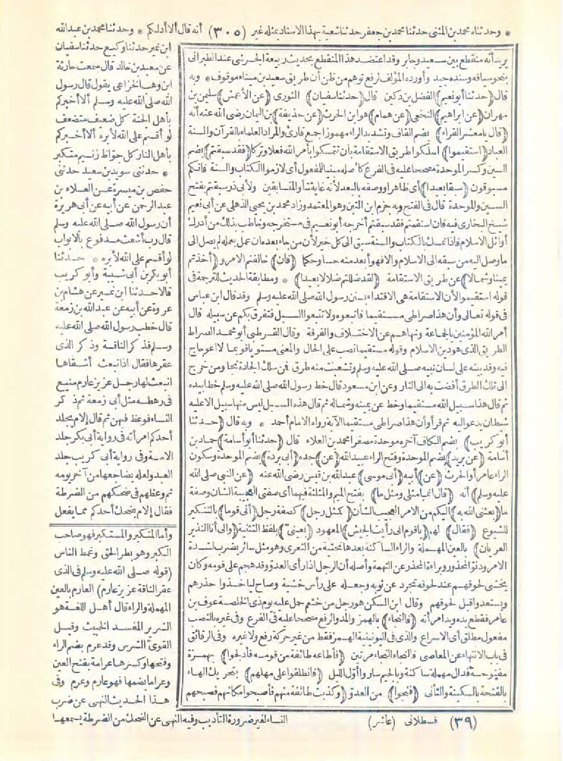 7282 - حَدَّثَنَا أَبُو نُعَيْمٍ، حَدَّثَنَا سُفْيَانُ عَنِ الأَعْمَشِ، عَنْ إِبْرَاهِيمَ، عَنْ هَمَّامٍ عَنْ حُذَيْفَةَ قَالَ: يَا مَعْشَرَ الْقُرَّاءِ اسْتَقِيمُوا فَقَدْ سُبِقْتُمْ سَبْقًا بَعِيدًا، فَإِنْ أَخَذْتُمْ يَمِينًا وَشِمَالاً لَقَدْ ضَلَلْتُمْ ضَلاَلاً بَعِيدًا.