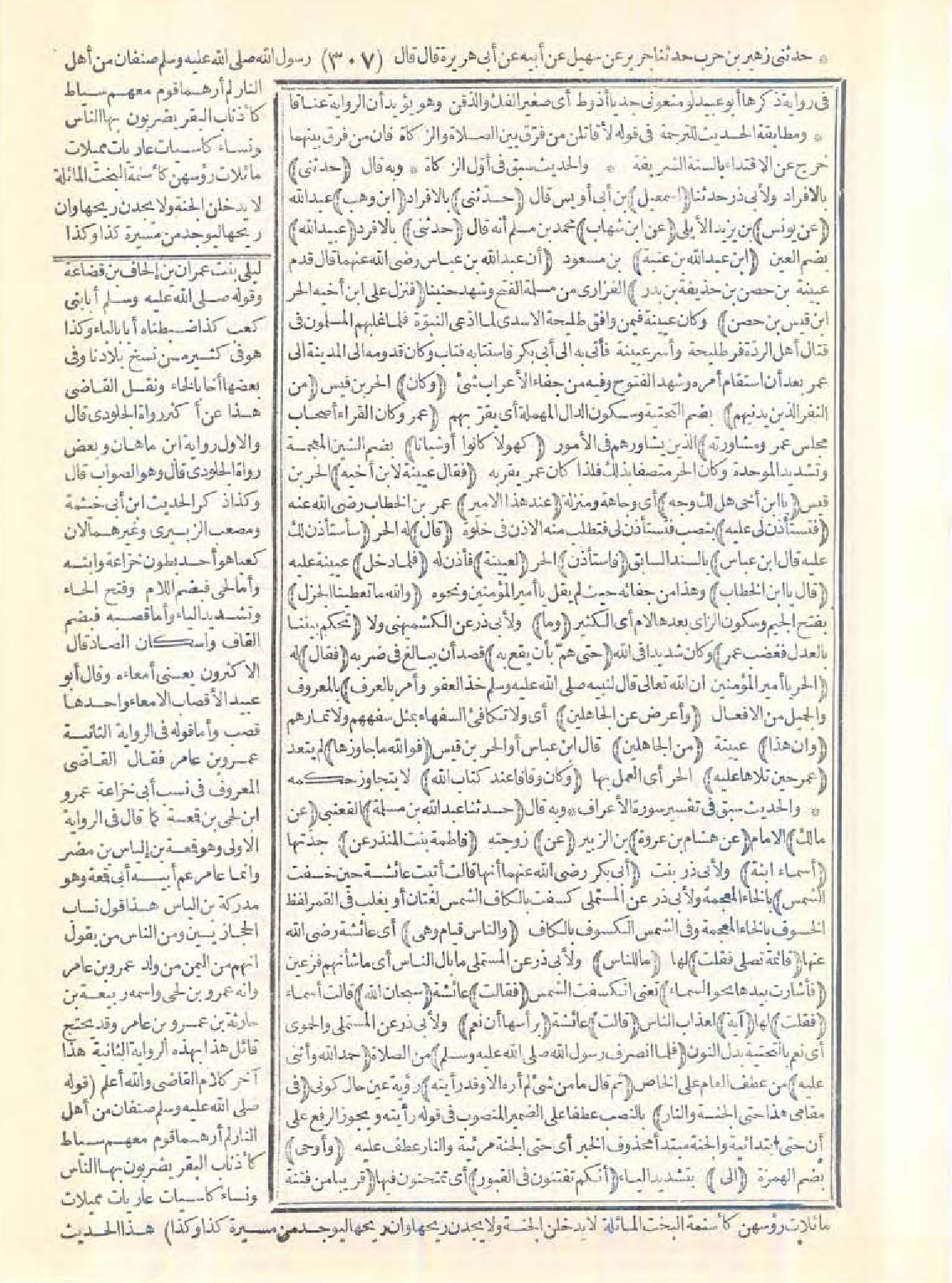 7286 - حَدَّثَنِى إِسْمَاعِيلُ، حَدَّثَنِى ابْنُ وَهْبٍ، عَنْ يُونُسَ، عَنِ ابْنِ شِهَابٍ حَدَّثَنِى عُبَيْدُ اللَّهِ بْنُ عَبْدِ اللَّهِ بْنِ عُتْبَةَ أَنَّ عَبْدَ اللَّهِ بْنَ عَبَّاسٍ - رضى الله عنهما - قَالَ: قَدِمَ عُيَيْنَةُ بْنُ حِصْنِ بْنِ حُذَيْفَةَ بْنِ بَدْرٍ فَنَزَلَ عَلَى ابْنِ أَخِيهِ الْحُرِّ بْنِ قَيْسِ بْنِ حِصْنٍ، وَكَانَ مِنَ النَّفَرِ الَّذِينَ يُدْنِيهِمْ عُمَرُ وَكَانَ الْقُرَّاءُ أَصْحَابَ مَجْلِسِ عُمَرَ وَمُشَاوَرَتِهِ كُهُولاً كَانُوا أَوْ شُبَّانًا، فَقَالَ عُيَيْنَةُ لاِبْنِ أَخِيهِ: يَا ابْنَ أَخِى هَلْ لَكَ وَجْهٌ عِنْدَ هَذَا الأَمِيرِ فَتَسْتَأْذِنَ لِى عَلَيْهِ؟ قَالَ: سَأَسْتَأْذِنُ لَكَ عَلَيْهِ قَالَ ابْنُ عَبَّاسٍ: فَاسْتَأْذَنَ لِعُيَيْنَةَ فَلَمَّا دَخَلَ قَالَ: يَا ابْنَ الْخَطَّابِ وَاللَّهِ مَا تُعْطِينَا الْجَزْلَ وَمَا تَحْكُمُ بَيْنَنَا بِالْعَدْلِ، فَغَضِبَ عُمَرُ حَتَّى هَمَّ بِأَنْ يَقَعَ بِهِ فَقَالَ الْحُرُّ: يَا أَمِيرَ الْمُؤْمِنِينَ إِنَّ اللَّهَ تَعَالَى قَالَ لِنَبِيِّهِ -صَلَّى اللَّهُ عَلَيْهِ وَسَلَّمَ-: {خُذِ الْعَفْوَ وَأْمُرْ بِالْعُرْفِ وَأَعْرِضْ عَنِ الْجَاهِلِينَ} [الأعراف: 199] وَإِنَّ هَذَا مِنَ الْجَاهِلِينَ فَوَاللَّهِ مَا جَاوَزَهَا عُمَرُ حِينَ تَلاَهَا عَلَيْهِ، وَكَانَ وَقَّافًا عِنْدَ كِتَابِ اللَّهِ.
