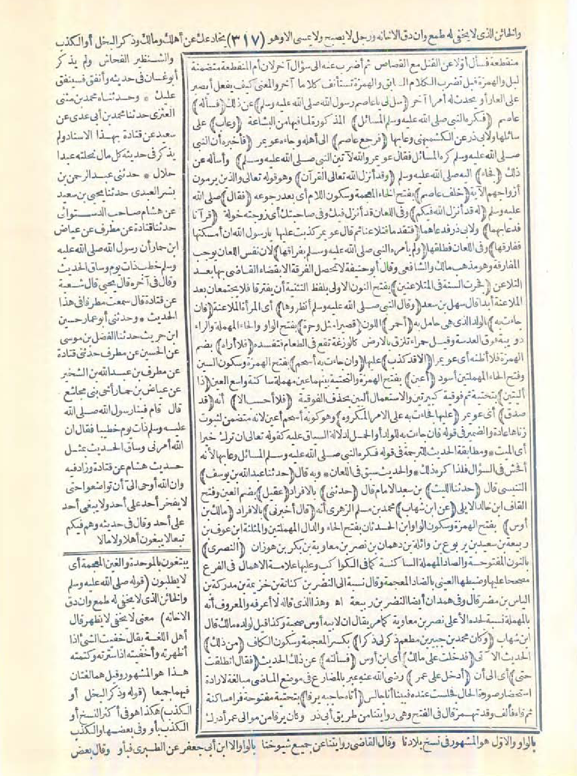 7305 - حَدَّثَنَا عَبْدُ اللَّهِ بْنُ يُوسُفَ، حَدَّثَنَا اللَّيْثُ، حَدَّثَنِى عُقَيْلٌ، عَنِ ابْنِ شِهَابٍ قَالَ: أَخْبَرَنِى مَالِكُ بْنُ أَوْسٍ النَّصْرِىُّ وَكَانَ مُحَمَّدُ بْنُ جُبَيْرِ بْنِ مُطْعِمٍ ذَكَرَ لِى ذِكْرًا مِنْ ذَلِكَ فَدَخَلْتُ عَلَى مَالِكٍ فَسَأَلْتُهُ فَقَالَ: انْطَلَقْتُ حَتَّى أَدْخُلَ عَلَى عُمَرَ أَتَاهُ حَاجِبُهُ يَرْفَا فَقَالَ: هَلْ لَكَ فِى عُثْمَانَ وَعَبْدِ الرَّحْمَنِ وَالزُّبَيْرِ وَسَعْدٍ يَسْتَأْذِنُونَ؟ قَالَ: نَعَمْ. فَدَخَلُوا فَسَلَّمُوا وَجَلَسُوا، فَقَالَ: هَلْ لَكَ فِى عَلِىٍّ وَعَبَّاسٍ فَأَذِنَ لَهُمَا؟ قَالَ الْعَبَّاسُ: يَا أَمِيرَ الْمُؤْمِنِينَ اقْضِ بَيْنِى وَبَيْنَ الظَّالِمِ اسْتَبَّا فَقَالَ الرَّهْطُ: عُثْمَانُ وَأَصْحَابُهُ يَا أَمِيرَ الْمُؤْمِنِينَ اقْضِ بَيْنَهُمَا وَأَرِحْ أَحَدَهُمَا مِنَ الآخَرِ، فَقَالَ: اتَّئِدُوا أَنْشُدُكُمْ بِاللَّهِ الَّذِى بِإِذْنِهِ تَقُومُ السَّمَاءُ وَالأَرْضُ هَلْ تَعْلَمُونَ أَنَّ رَسُولَ اللَّهِ -صَلَّى اللَّهُ عَلَيْهِ وَسَلَّمَ- قَالَ: «لاَ نُورَثُ مَا تَرَكْنَا صَدَقَةٌ»؟ يُرِيدُ رَسُولُ اللَّهِ -صَلَّى اللَّهُ عَلَيْهِ وَسَلَّمَ- نَفْسَهُ قَالَ الرَّهْطُ: قَدْ قَالَ ذَلِكَ، فَأَقْبَلَ عُمَرُ عَلَى عَلِىٍّ وَعَبَّاسٍ فَقَالَ: أَنْشُدُكُمَا بِاللَّهِ هَلْ تَعْلَمَانِ أَنَّ رَسُولَ اللَّهِ -صَلَّى اللَّهُ عَلَيْهِ وَسَلَّمَ- قَالَ ذَلِكَ؟ قَالاَ: نَعَمْ. قَالَ عُمَرُ: فَإِنِّى مُحَدِّثُكُمْ عَنْ هَذَا الأَمْرِ إِنَّ اللَّهَ كَانَ خَصَّ رَسُولَهُ -صَلَّى اللَّهُ عَلَيْهِ وَسَلَّمَ- فِى هَذَا الْمَالِ بِشَىْءٍ لَمْ يُعْطِهِ أَحَدًا غَيْرَهُ، فَإِنَّ اللَّهَ يَقُولُ: {مَا أَفَاءَ اللَّهُ عَلَى رَسُولِهِ مِنْهُمْ فَمَا أَوْجَفْتُمْ} [الحشر: 2] الآيَةَ. فَكَانَتْ هَذِهِ خَالِصَةً لِرَسُولِ اللَّهِ -صَلَّى اللَّهُ عَلَيْهِ وَسَلَّمَ- ثُمَّ وَاللَّهِ مَا احْتَازَهَا دُونَكُمْ، وَلاَ اسْتَأْثَرَ بِهَا عَلَيْكُمْ وَقَدْ أَعْطَاكُمُوهَا وَبَثَّهَا فِيكُمْ، حَتَّى بَقِىَ مِنْهَا هَذَا الْمَالُ، وَكَانَ النَّبِىُّ -صَلَّى اللَّهُ عَلَيْهِ وَسَلَّمَ- يُنْفِقُ عَلَى أَهْلِهِ نَفَقَةَ سَنَتِهِمْ مِنْ هَذَا الْمَالِ، ثُمَّ يَأْخُذُ مَا بَقِىَ فَيَجْعَلُهُ