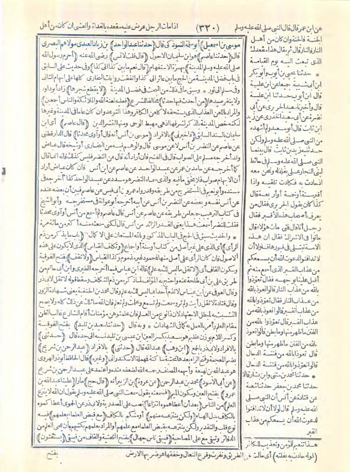 آوى محدثًا). قال الدارقطني عن عاصم عن النضر بن أنس لا عن موسى قال: والوهم فيه من البخاري أو شيخه. قال عياض: وقد أخرجه مسلم على الصواب. قال في الفتح: فإن أراد أنه قال عن النضر فليس كذلك فإنه إنما قال كما أخرجه عن حامد بن عمر عن عبد الواحد عن عاصم عن ابن أنس، فإن كان عياض أراد أن الإبهام صواب فلا يخفى ما فيه، والذي سماه النضر هو مسدد عن عبد الواحد كذا أخرجه في مسنده وأبو نعيم في المستخرج من طريقه، وقد رواه عمرو بن أبي قيس عن عاصم فبيّن أن بعضه عنده عن أنس نفسه، وبعضه عن النضر بن أنس عن أبيه أخرجه أبو عوانة في مستخرجه وأبو الشيخ في كتاب الترهيب جميعًا من طريقه عن عاصم عن أنس. قال عاصم: ولم أسمع من أنس أو آوى محدثًا فقلت للنضر: أسمعت هذا يعني القدر الزائد من أنس؟ قال: لكني سمعته منه أكثر من مائة مرة.