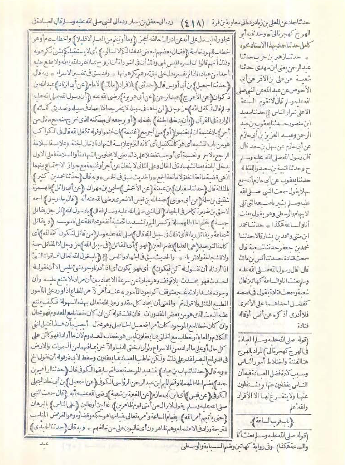 7459 - حَدَّثَنَا شِهَابُ بْنُ عَبَّادٍ، حَدَّثَنَا إِبْرَاهِيمُ بْنُ حُمَيْدٍ، عَنْ إِسْمَاعِيلَ عَنْ قَيْسٍ، عَنِ الْمُغِيرَةِ بْنِ شُعْبَةَ قَالَ: سَمِعْتُ النَّبِىَّ -صَلَّى اللَّهُ عَلَيْهِ وَسَلَّمَ- يَقُولُ: «لاَ يَزَالُ مِنْ أُمَّتِى قَوْمٌ ظَاهِرِينَ عَلَى النَّاسِ حَتَّى يَأْتِيَهُمْ أَمْرُ اللَّهِ».