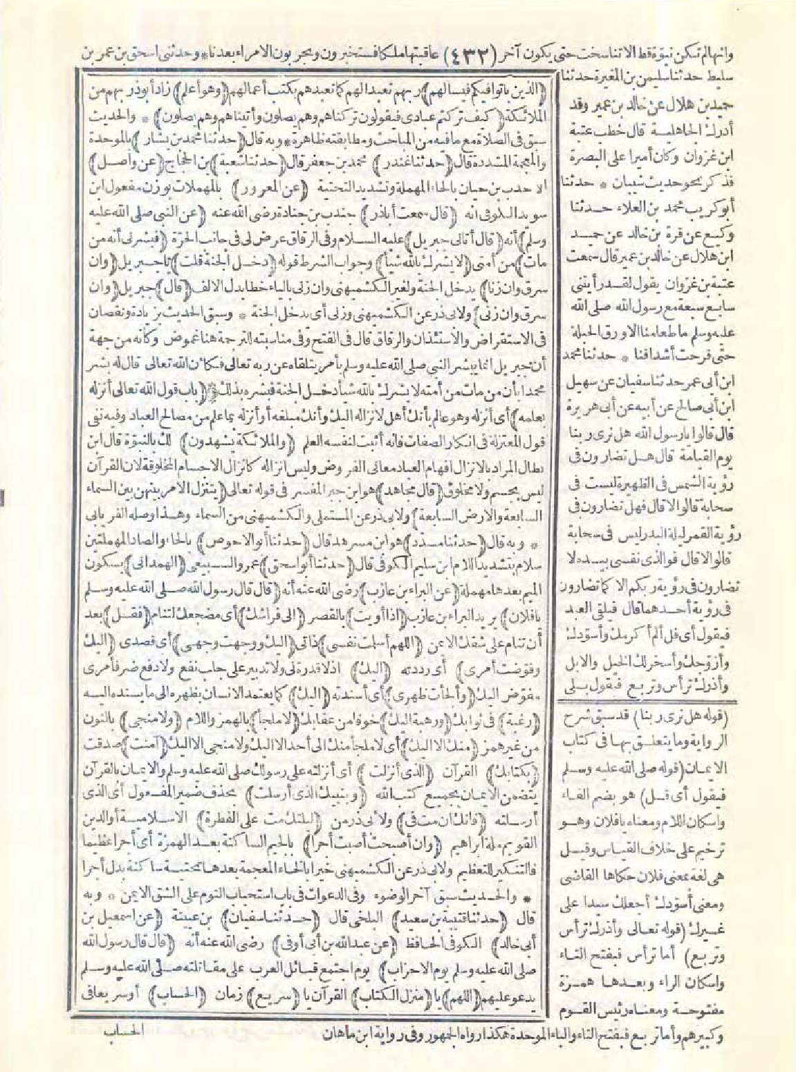 وسبق الحديث بزيادة ونقصان في الاستقراض والاستئذان والرقاق. قال في الفتح: وفي مناسبته للترجمة هنا غموض وكأنه من جهة أن جبريل إنما يبشر النبي -صَلَّى اللَّهُ عَلَيْهِ وَسَلَّمَ- بأمر يتلقاه عن ربه تعالى فكأن الله تعالى قال له: بشر محمدًا بأن من مات من أمته لا يشرك بالله شيئًا دخل الجنة فبشّره بذلك.