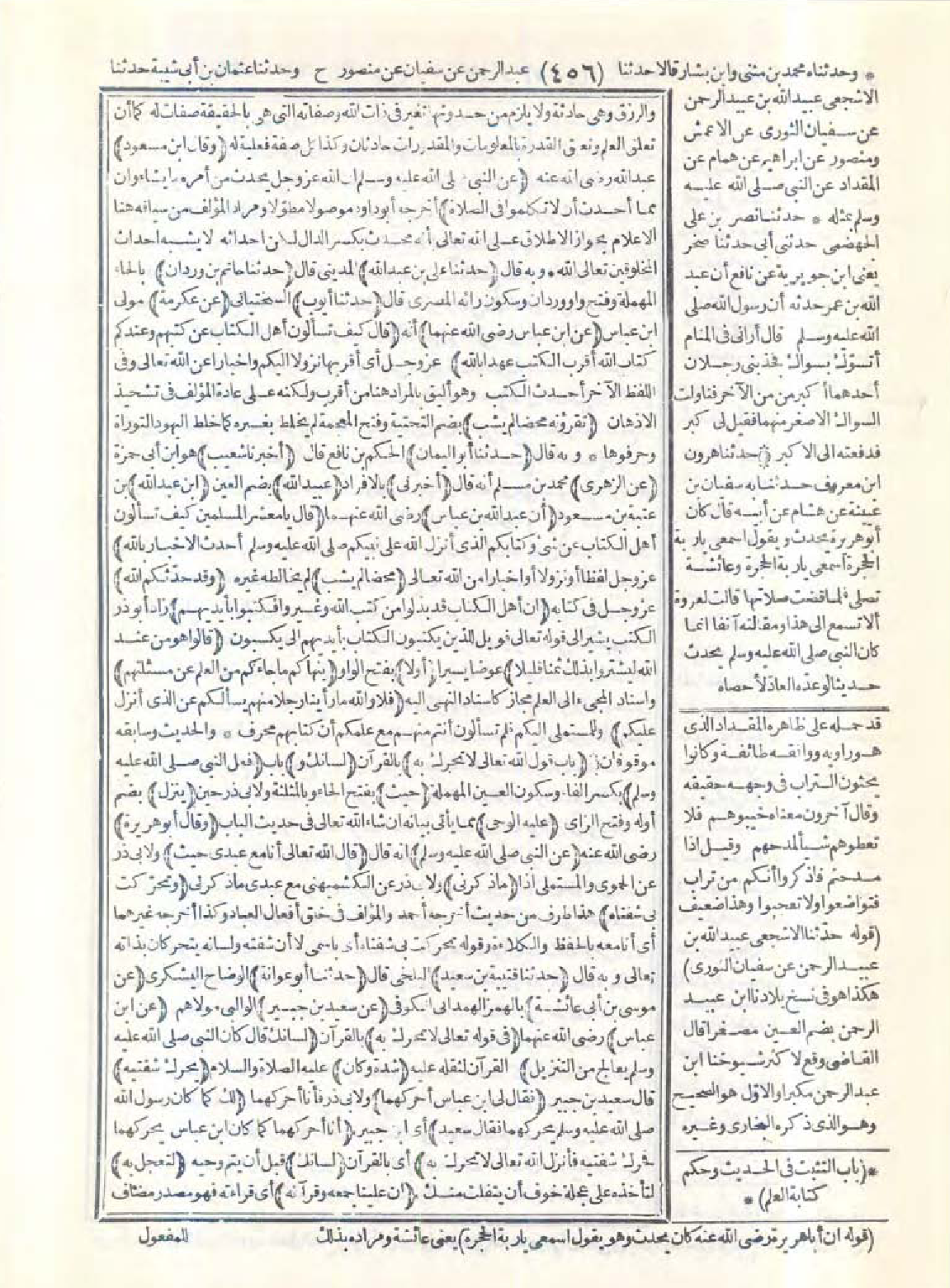 (وقال ابن مسعود) عبد الله -رضي الله عنه- (عن النبي -صَلَّى اللَّهُ عَلَيْهِ وَسَلَّمَ-: إن الله عز وجل يحدث من أمره ما يشاء وإن مما أحدث أن لا تكلموا في الصلاة). أخرجه أبو داود موصولاً مطوّلاً ومراد المؤلف من سياقه هنا الإعلام بجواز الإطلاق على الله تعالى بأنه محدث بكسر الدال لكن إحداثه لا يشبه إحداث المخلوقين تعالى الله.