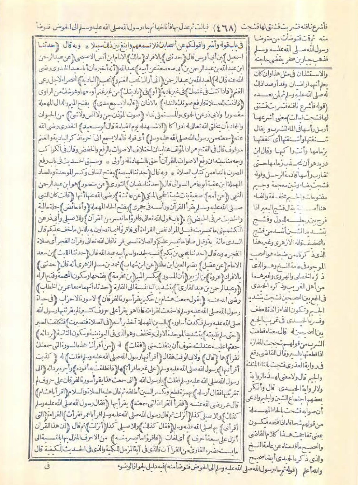 (في حياة رسول الله -صَلَّى اللَّهُ عَلَيْهِ وَسَلَّمَ- فاستمعت لقراءته فإذا هو يقرأ على حروف كثيرة لم يقرئنيها رسول الله -صَلَّى اللَّهُ عَلَيْهِ وَسَلَّمَ- فكدت أُساوره) بالسين المهملة آخذ برأسه (في الصلاة فتصبرت) فتكلفت الصبر (حتى سلم فلببته) بتشديد الموحدة الأولى وتخفف وهو الذي في اليونينية وسكون الثانية (بردائه) جمعتها عليه عند لبته خوف أن ينفلت مني (فقلت) له: (من أقرأك هذه السورة التي سمعتك تقرأ) ها (قال) ولأبي الوقت قال (أقرأنيها رسول الله -صَلَّى اللَّهُ عَلَيْهِ وَسَلَّمَ- فقلت) له (كذبت أقرأنيها) رسول الله -صَلَّى اللَّهُ عَلَيْهِ وَسَلَّمَ- (على غير ما قرأت) ها (فانطلقت به أقوده) وأجرّه بردائه (إلى رسول الله -صَلَّى اللَّهُ عَلَيْهِ وَسَلَّمَ- فقلت) يا رسول الله (إني سمعت هذا يقرأ سورة الفرقان على حروف لم تقرئنيها فقال):