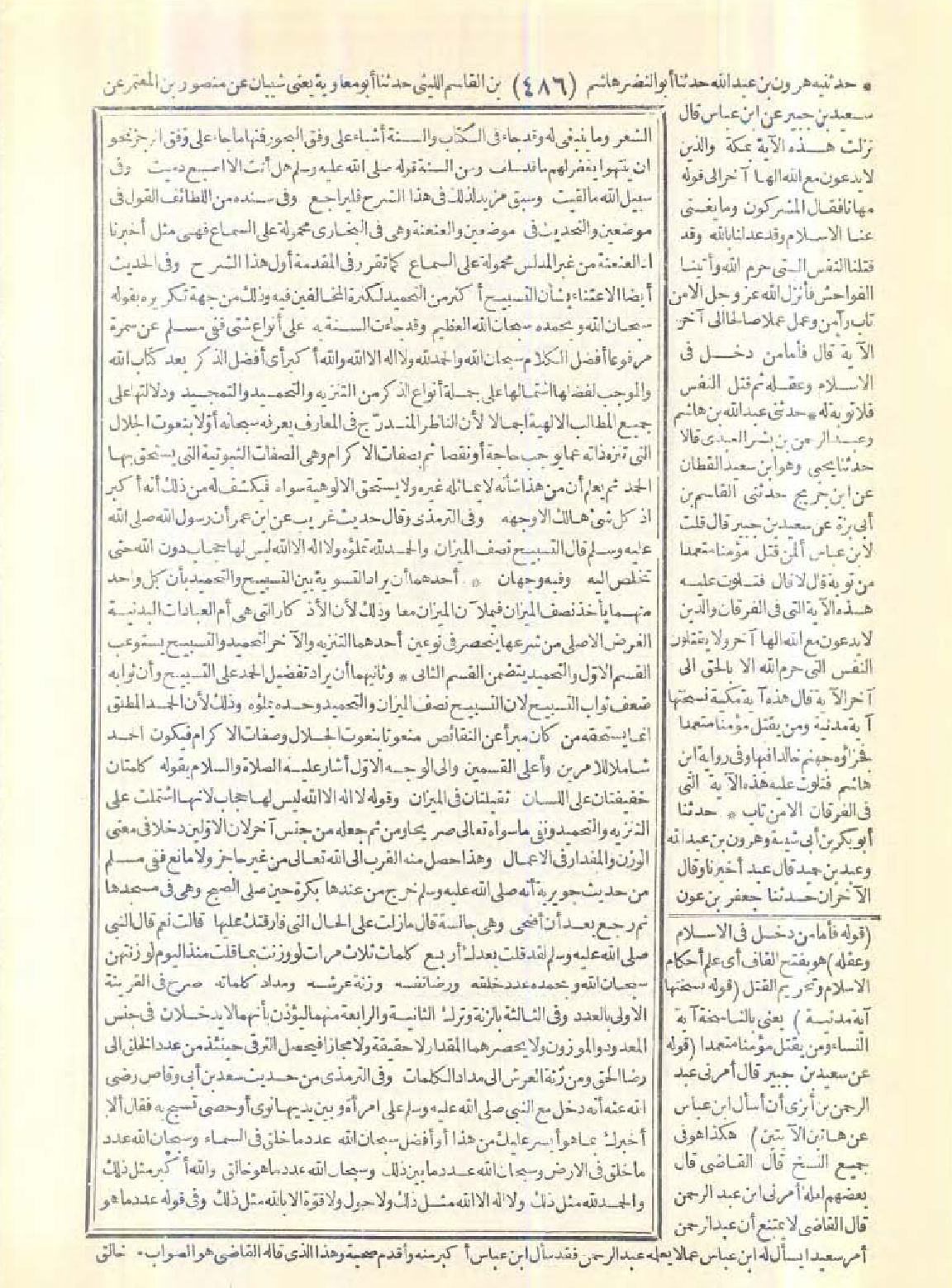 وفي الترمذي وقال حديث غريب عن ابن عمر أن رسول الله -صَلَّى اللَّهُ عَلَيْهِ وَسَلَّمَ- قال: "التسبيح نصف الميزان والحمد لله تملؤه ولا إله إلا الله ليس لها حجاب دون الله حتى تخلص إليه". وفيه وجهان.