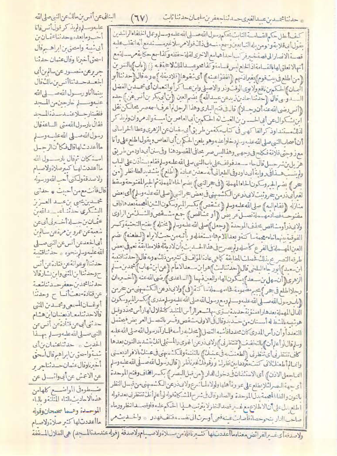 6900 - حَدَّثَنَا أَبُو النُّعْمَانِ، حَدَّثَنَا حَمَّادُ بْنُ زَيْدٍ، عَنْ عُبَيْدِ اللَّهِ بْنِ أَبِى بَكْرِ بْنِ أَنَسٍ، عَنْ أَنَسٍ - رضى الله عنه - أَنَّ رَجُلاً اطَّلَعَ فِى بَعْضِ حُجَرِ النَّبِيِّ -صَلَّى اللَّهُ عَلَيْهِ وَسَلَّمَ- فَقَامَ إِلَيْهِ بِمِشْقَصٍ أَوْ بِمَشَاقِصَ وَجَعَلَ يَخْتِلُهُ لِيَطْعُنَهُ.