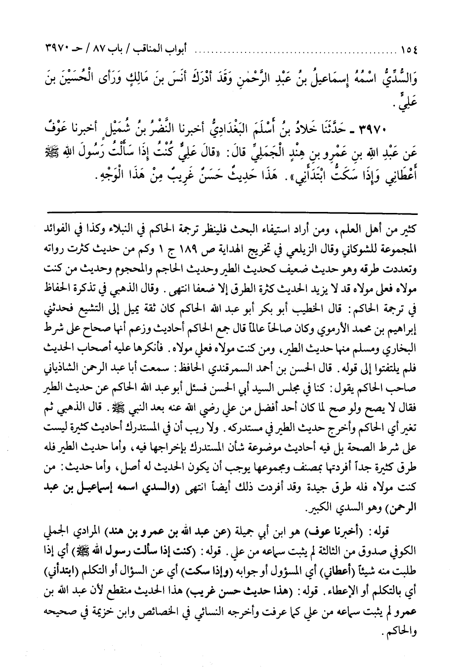 وَلَا رَيْبَ أَنَّ فِي الْمُسْتَدْرَكِ أَحَادِيثَ كَثِيرَةً لَيْسَتْ عَلَى شَرْطِ الصِّحَّةِ بَلْ فِيهِ أَحَادِيثُ مَوْضُوعَةٌ شَانَ الْمُسْتَدْرَكِ بِإِخْرَاجِهَا فِيهِ وَأَمَّا حَدِيثُ الطَّيْرِ فَلَهُ طُرُقٌ كَثِيرَةٌ جِدًّا أَفْرَدْتُهَا بِمُصَنَّفٍ وَمَجْمُوعُهَا يُوجِبُ أَنْ يَكُونَ الْحَدِيثُ لَهُ أَصْلٌ وَأَمَّا حَدِيثُ مَنْ كُنْتُ مَوْلَاهُ فَلَهُ طُرُقٌ جَيِّدَةٌ وَقَدْ أَفْرَدْتُ ذَلِكَ أَيْضًا انْتَهَى (وَالسُّدِّيُّ اسْمُهُ إِسْمَاعِيلُ بْنُ عَبْدِ الرَّحْمَنِ) وَهُوَ السُّدِّيُّ الْكَبِيرُ