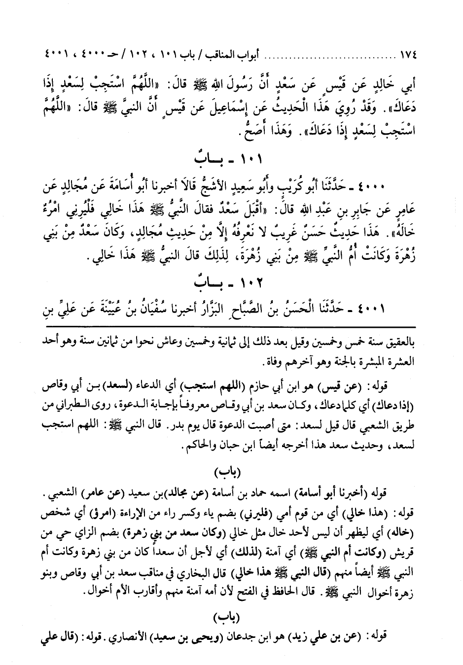قَالَ النَّبِيُّ صَلَّى اللَّهُ عَلَيْهِ وَسَلَّمَ اللَّهُمَّ اسْتَجِبْ لِسَعْدٍ وَحَدِيثُ سَعْدٍ هَذَا أخرجه أيضا بن حبان والحاكم