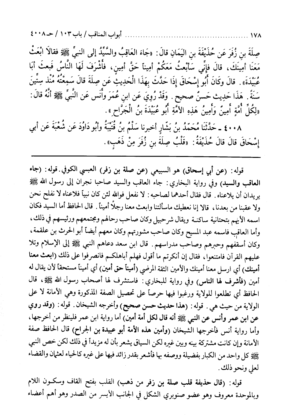 قَوْلُهُ (عَنْ يَزِيدَ بْنِ أَبِي زِيَادٍ الْقُرَشِيِّ الْهَاشِمِيِّ عَنْ عَبْدِ اللَّهِ بْنِ الْحَارِثِ بْنِ نَوْفَلِ الْهَاشِمِيِّ حَدَّثَنِي عَبْدُ الْمُطَّلِبِ بْنِ رَبِيعَةَ بْنُ الْحَارِثِ بْنِ عَبْدِ الْمُطَّلِبِ بْنُ هَاشِمٍ الْهَاشِمِيُّ صَحَابِيٌّ سَكَنَ الشَّامَ وَمَاتَ سَنَةَ اثْنَتَيْنِ وَسِتِّينَ يُقَالُ اسْمُهُ الْمُطَّلِبُ قَوْلُهُ مُغْضَبًا بِصِيغَةِ اسْمِ الْمَفْعُولِ مَا أَغْضَبَكَ أَيْ أَيُّ شَيْءٍ جَعَلَكَ غَضْبَانَ مَا لَنَا أَيْ مَعْشَرِ بَنِي هَاشِمٍ وَلِقُرَيْشٍ أَيْ بَقِيَّتِهِمْ بِوُجُوهٍ مُبْشَرَةٍ بِصِيغَةِ اسْمِ الْمَفْعُولِ مِنَ الْإِبْشَارِ قَالَ الطِّيبِيُّ كَذَا فِي جَامِعِ التِّرْمِذِيِّ وَفِي جَامِعِ الْأُصُولِ مُسْفِرَةٍ يَعْنِي عَلَى أَنَّهُ اسْمُ فَاعِلٍ مِنَ الْإِسْفَارِ بِمَعْنَى مُضِيئَةٍ قَالَ التُّورِبِشْتِيُّ) هُوَ بِضَمِّ الْمِيمِ وَسُكُونِ الْبَاءِ وَفَتْحِ الشِّينِ يُرِيدُ بِوُجُوهٍ عَلَيْهَا البشر من قولهم فلان مردم مبشر إذا كانت له أدمة وبشرة محمودتين انْتَهَى وَالْمَعْنَى تَلَاقِي بَعْضِهِمْ بَعْضًا بِوُجُوهٍ ذَاتِ بِشْرٍ وَبَسْطٍ وَإِذَا لَقُونَا بِضَمِّ الْقَافِ لَقُونَا بِغَيْرِ ذَلِكَ أَيْ بِوُجُوهٍ ذَاتِ قَبْضٍ وَعُبُوسٍ وَكَأَنَ وَجْهُهُ أَنَّهُمْ يَحْسُدُونَ النَّاسَ عَلَى مَا آتَاهُمُ اللَّهُ مِنْ فَضْلِهِ حَتَّى احْمَرَّ وَجْهُهُ أَيِ اشْتَدَّ حُمْرَتُهُ مِنْ كَثْرَةِ غَضَبِهِ لَا يَدْخُلُ قَلْبَ رَجُلٍ الْإِيمَانُ أَيْ مُطْلَقًا وَأُرِيدَ بِهِ الْوَعِيدُ الشَّدِيدُ أَوِ الْإِيمَانُ الْكَامِلُ فَالْمُرَادُ بِهِ تَحْصِيلُهُ عَلَى الْوَجْهِ الْأَكِيدِ حَتَّى يُحِبَّكُمْ لِلَّهِ وَلِرَسُولِهِ أَيْ مِنْ حَيْثُ أَظْهَرَ رَسُولَهُ وَاللَّهُ أَعْلَمُ حَيْثُ يَجْعَلُ رِسَالَتَهُ وَقَدْ كَانَ يَتَفَوَّهُ أَبُو جَهْلٍ حَيْثُ يَقُولُ إِذَا كَانَ بَنُو هَاشِمٍ أَخَذُوا الرَّايَةَ وَالسِّقَايَةَ وَالنُّبُوَّةَ وَالرِّسَالَةَ فَمَا بَقِيَ لِبَقِيَّةِ قُرَيْشٍ مَنْ آذَى عَمِّي أَيْ خُصُوصًا فَقَدْ آذَانِي أَيْ فَكَأَنَّهُ آذَانِي فَإِنَّمَا عَمُّ الرَّجُلِ صِنْوُ أَبِيهِ بِكَسْرِ الصَّادِ وَسُكُونِ النُّونِ أَيْ مِثْلُهُ وَأَصْلُهُ أَنْ يَطْلُعَ نَخْلَتَانِ أَوْ ثَلَاثٌ مِنْ أَصْلِ عِرْقٍ وَاحِدٍ فَكُلُّ وَاحِدَةٍ مِنْهُنَّ صِنْوٌ يَعْنِي مَا عَمُّ الرَّجُلِ وَأَبُوهُ إِلَّا كَصِنْوَيْنِ مِنْ أَصْلٍ وَاحِدٍ فَهُوَ مِثْلُ أَبِي أَوْ مِثْلِي قَوْلُهُ هَذَا حَدِيثٌ حَسَنٌ صَحِيحٌ وَأَخْرَجَهُ أَحْمَدُ قَوْلُهُ حَدَّثَنَا عبيد الله هو بْنُ مُوسَى) الْعَبْسِيُّ الْكُوفِيُّ عَنْ إِسْرَائِيلَ بْنِ يُونُسَ عَنْ عَبْدِ الْأَعْلَى بْنِ عَامِرٍ الثَّعْلَبِيِّ الْكُوفِيِّ قَوْلُهُ (الْعَبَّاسُ مِنِّي وَأَنَا مِنْهُ قَالَ فِي الْمِرْقَاةِ أَيْ مِنْ أَقَارِبِي أَوْ مِنْ أَهْلِ بَيْتِي أَوْ مُتَّصِلٌ بِي انْتَهَى وَقَالَ فِي اللُّمَعَاتِ رَسُولِ اللَّهِ صَلَّى اللَّهُ عَلَيْهِ وَسَلَّمَ أَصْلُ بِاعْتِبَارِ الشَّرَفِ وَالْفَضْلِ وَالنُّبُوَّةِ وَالْعَبَّاسُ أَصْلٌ مِنْ جِهَةِ النَّسَبِ وَالْعُمُومَةِ قَوْلُهُ هَذَا حَدِيثٌ حَسَنٌ صَحِيحٌ غَرِيبٌ أَخْرَجَهُ الْحَاكِمُ وَهَذَا الْبَابُ مَعَ حَدِيثِهِ لَمْ يَقَعْ فِي بَعْضِ النُّسَخِ قَوْلُهُ أَخْبَرَنَا وَهْبُ بْنُ جَرِيرِ بْنِ حَازِمٍ الْأَزْدِيُّ الْبَصْرِيُّ عَنْ عَمْرِو بْنِ مُرَّةَ الْجَمَلِيِّ الْمُرَادِيِّ عَنْ أَبِي الْبُخْتُرِيِّ اسْمُهُ سَعِيدُ بْنُ فَيْرُوزَ قَوْلُهُ وَكَانَ عُمَرُ كَلَّمَهُ أَيِ النَّبِيَّ صَلَّى اللَّهُ عَلَيْهِ وَسَلَّمَ فِي صَدَقَتِهِ) أَيْ فِي أَخْذِ صَدَقَةِ الْعَبَّاسِ) وَفِي حَدِيثِ أَبِي هُرَيْرَةَ عِنْدَ الشَّيْخَيْنِ بَعَ