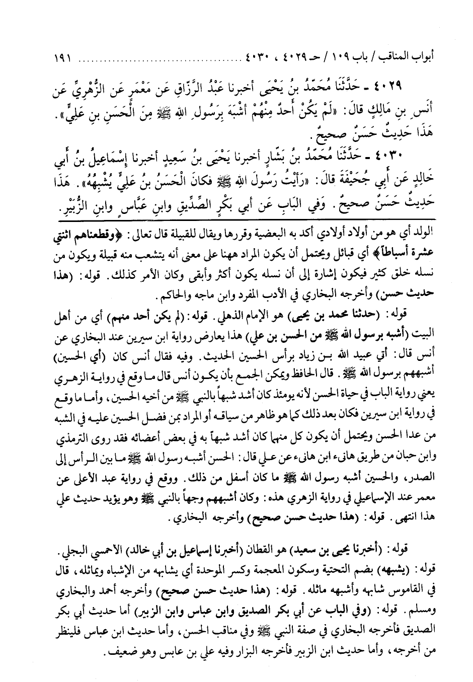 وَفِيهِ فَقَالَ أَنَسٌ كَانَ (أَيِ الْحُسَيْنُ) أَشْبَهَهُمْ بِرَسُولِ اللَّهِ صَلَّى اللَّهُ عَلَيْهِ وَسَلَّمَ