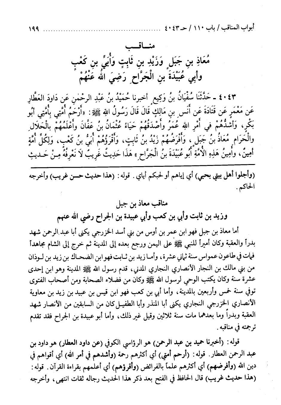 4 - (بَاب مَنَاقِبِ مُعَاذِ بْنِ جَبَلٍ وَزَيْدِ بْنِ ثَابِتٍ وَأُبَيِّ بْنِ كَعْبٍ)
