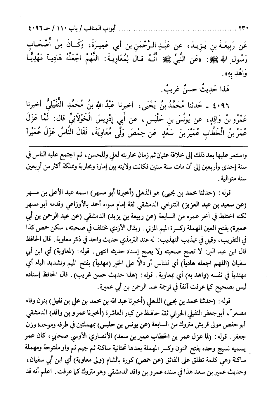 [3842] قَوْلُهُ (حَدَّثَنَا مُحَمَّدُ بْنُ يَحْيَى) هُوَ الذُّهْلِيُّ (حَدَّثَنَا أَبُو مُسْهِرٍ) اسْمُهُ عَبْدُ الْأَعْلَى بْنُ مُسْهِرٍ (عَنْ سَعِيدِ بْنِ عَبْدِ الْعَزِيزِ) التَّنُوخِيِّ الدِّمَشْقِيِّ ثِقَةٌ إِمَامٌ سَوَّاهُ أَحْمَدُ بِالْأَوْزَاعِيِّ وَقَدَّمَهُ أَبُو مُسْهِرٍ لَكِنَّهُ اخْتَلَطَ فِي آخِرِ عُمُرِهِ مِنَ السَّابِعَةِ (عَنْ رَبِيعَةَ بْنِ يَزِيدَ) الدِّمَشْقِيِّ (عَنْ عَبْدِ الرَّحْمَنِ بْنِ أَبِي عَمِيرَةَ) بِفَتْحِ الْعَيْنِ الْمُهْمَلَةِ وَكَسْرَةِ الْمِيمِ الْمُزَنِيِّ