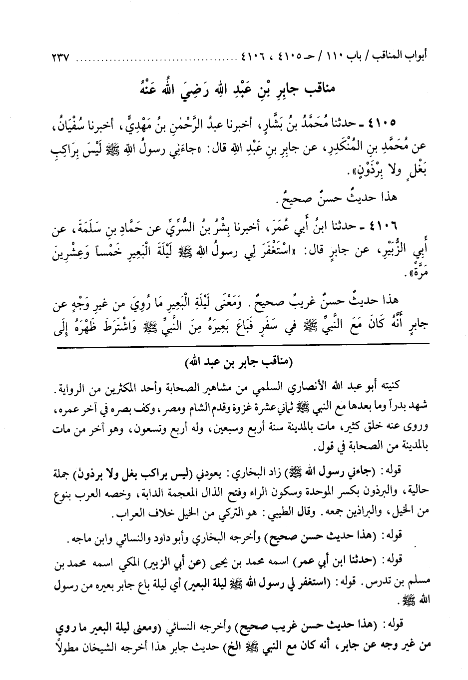 قَوْلُهُ (هَذَا حَدِيثٌ حَسَنٌ غَرِيبٌ صَحِيحٌ) وَأَخْرَجَهُ النَّسَائِيُّ (وَمَعْنَى لَيْلَةَ الْبَعِيرِ مَا رُوِيَ مِنْ غَيْرِ وَجْهٍ عَنْ جَابِرٍ أَنَّهُ كَانَ مَعَ النَّبِيِّ صَلَّى اللَّهُ عَلَيْهِ وَسَلَّمَ إِلَخْ) حَدِيثُ جَابِرٍ هَذَا أَخْرَجَهُ الشيخان مطولا