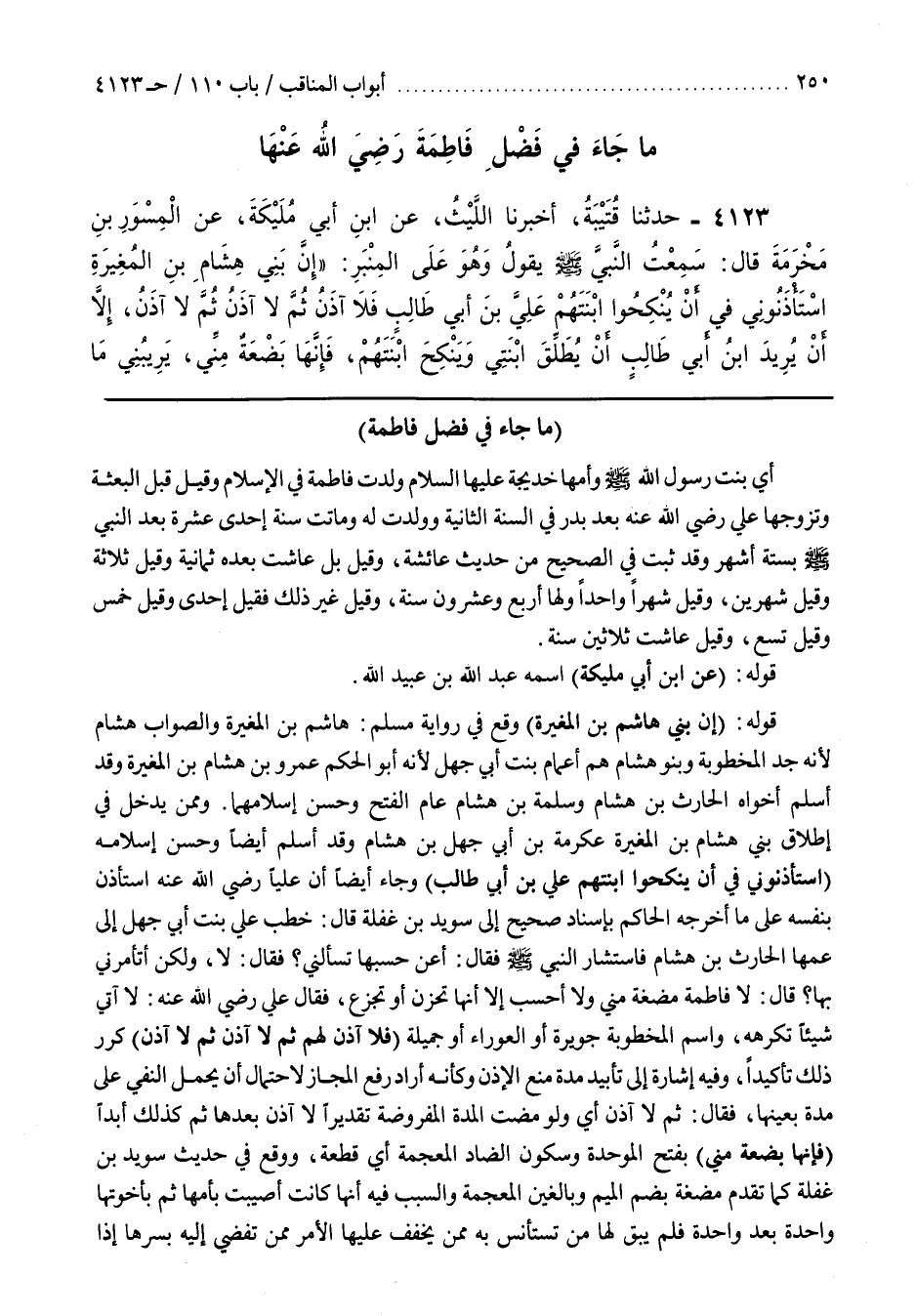 123 - (بَاب مَا جَاءَ فِي فَضْلِ فَاطِمَةَ بِنْتِ محمد)