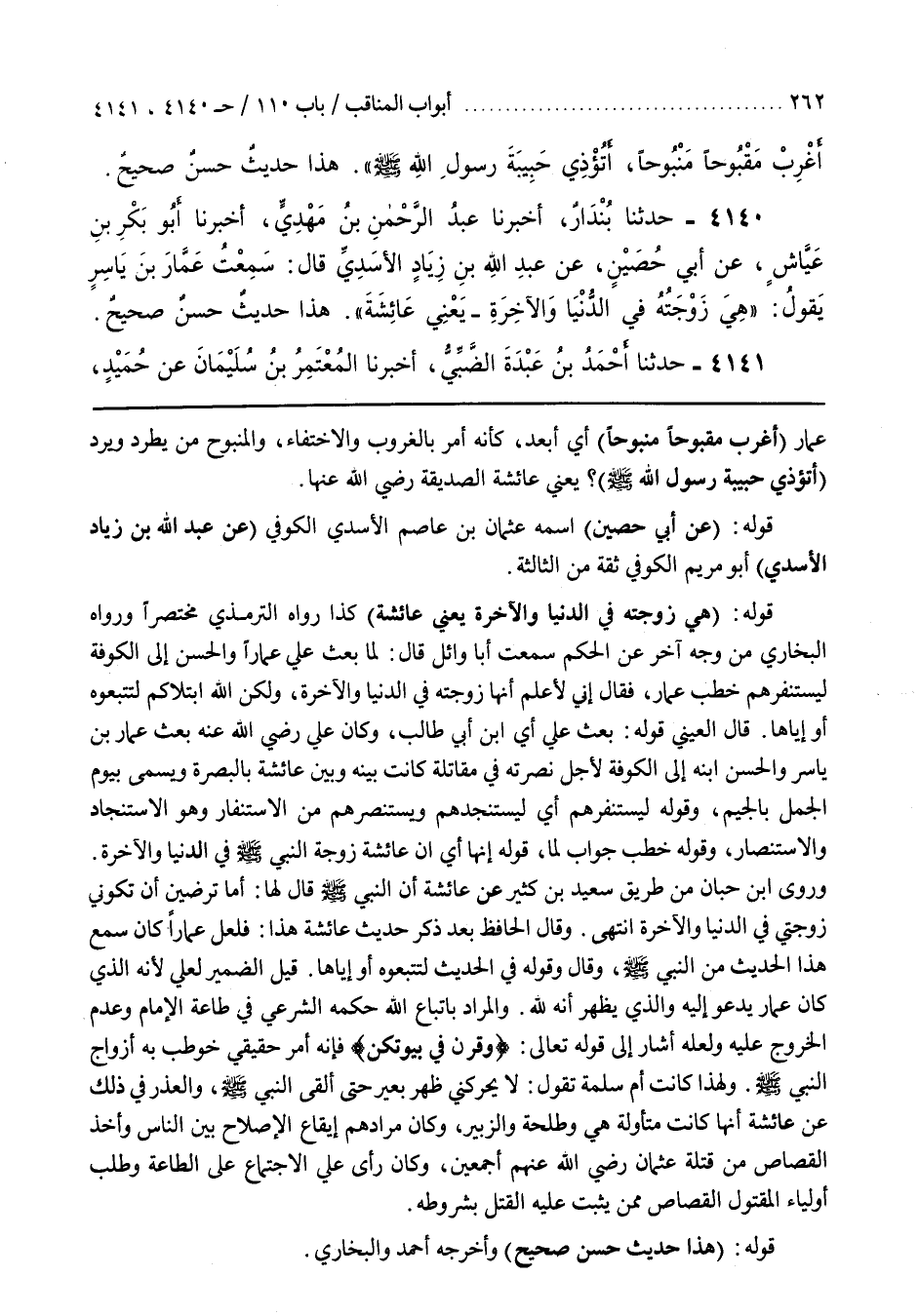 عَمَّارٌ (اغْرُبْ مَقْبُوحًا مَنْبُوحًا) أَيِ ابْعُدْ كَأَنَّهُ أَمْرٌ بِالْغُرُوبِ وَالِاخْتِفَاءِ وَالْمَنْبُوحُ مَنْ يُطْرَدُ وَيُرَدُّ (أتؤذي حبيبة رسول الله) يَعْنِي عَائِشَةَ الصِّدِّيقَةَ رَضِيَ اللَّهُ عَنْهَا