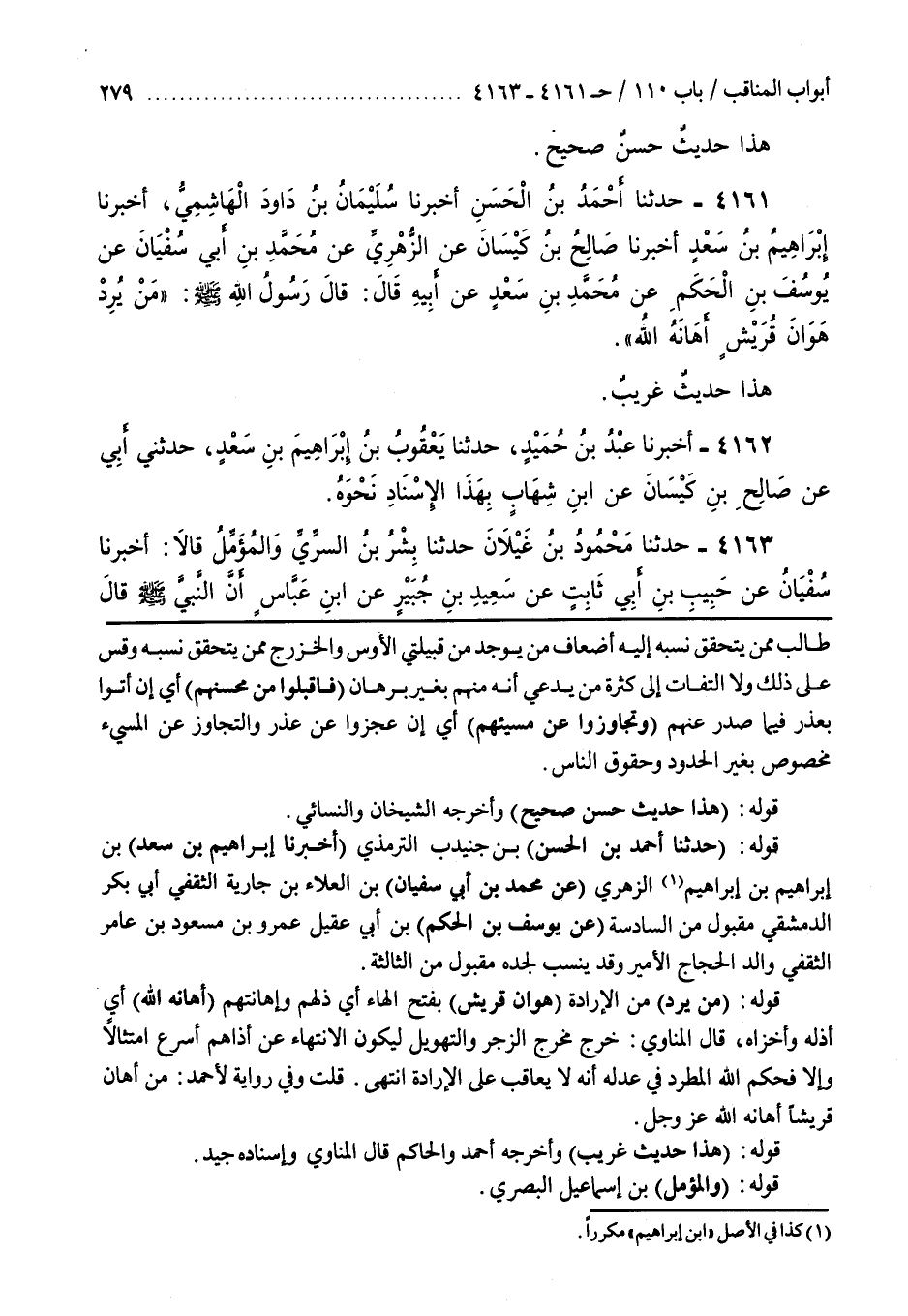 طَالِبٍ مِمَّنْ يَتَحَقَّقُ نَسَبُهُ إِلَيْهِ أَضْعَافُ مَنْ يُوجَدُ مِنْ قَبِيلَتَي الْأَوْسِ وَالْخَزْرَجِ مِمَّنْ يَتَحَقَّقُ نَسَبُهُ وَقِسْ عَلَى ذَلِكَ وَلَا الْتِفَاتَ إِلَى كَثْرَةِ مَنْ يَدَّعِي أَنَّهُ مِنْهُمْ بِغَيْرِ بُرْهَانٍ (فَاقْبَلُوا مِنْ مُحْسِنِهِمْ) أَيْ إِنْ أَتَوْا بِعُذْرٍ فِيمَا صَدَرَ عَنْهُمْ (وَتَجَاوَزُوا عَنْ مُسِيئِهِمْ) أَيْ إِنْ عَجَزُوا عَنْ عُذْرٍ وَالتَّجَاوُزُ عَنِ الْمُسِيءِ مَخْصُوصٌ بِغَيْرِ الْحُدُودِ وَحُقُوقِ النَّاسِ