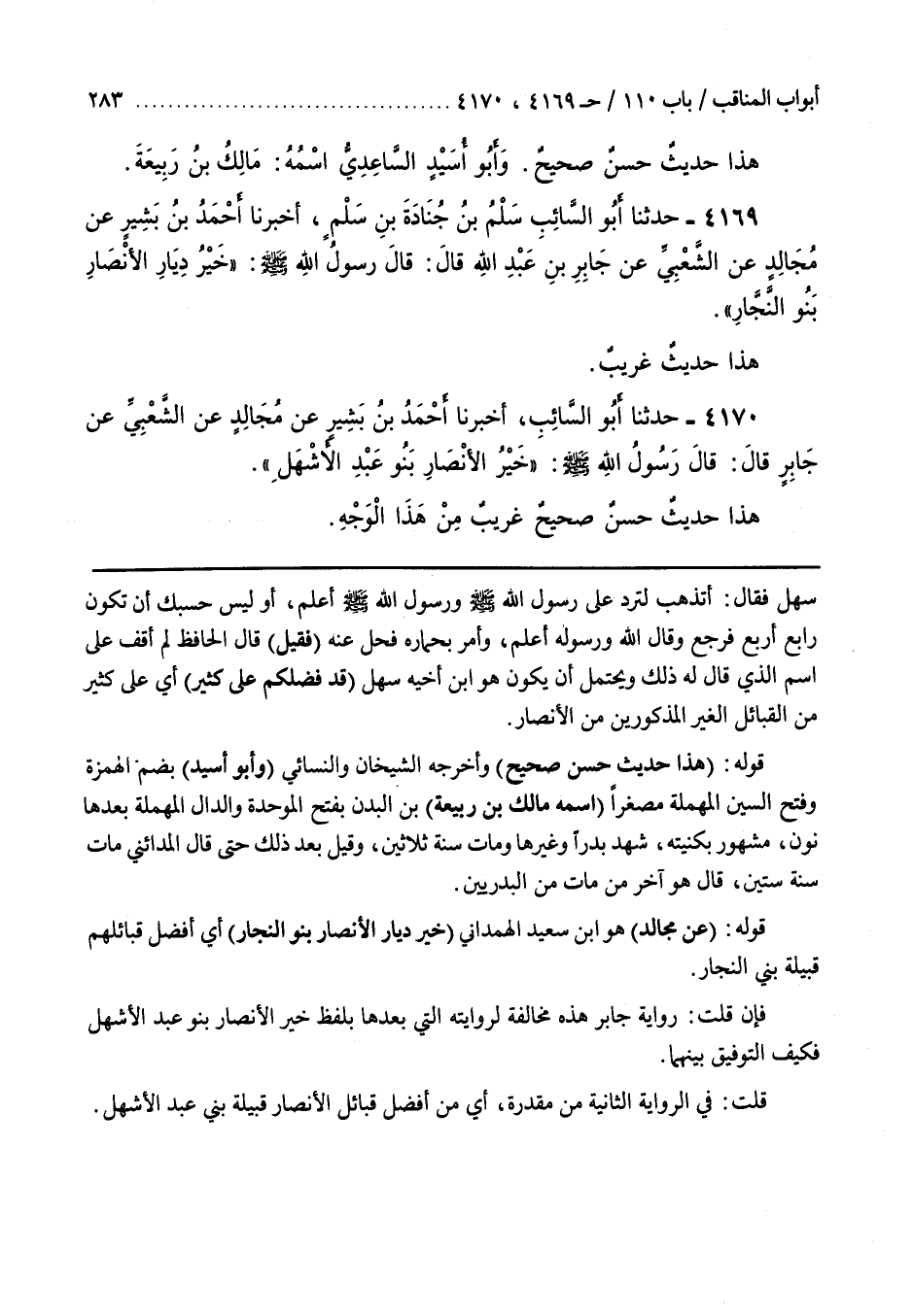[3912] قَوْلُهُ (عَنْ مجالد) هو بن سَعِيدٌ الْهَمْدَانِيُّ (خَيْرُ دِيَارِ الْأَنْصَارِ بَنُو النَّجَّارِ) أَيْ أَفْضَلُ قَبَائِلِهِمْ قَبِيلَةُ بَنِي النَّجَّارِ