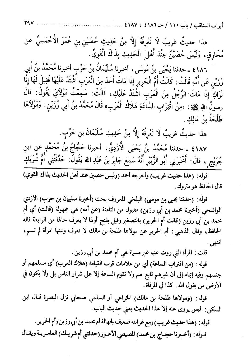 [3929] قَوْلُهُ (حَدَّثَنَا يَحْيَى بْنُ مُوسَى) الْبَلْخِيُّ الْمَعْرُوفُ بِخَتٍّ (أَخْبَرَنَا سُلَيْمَانُ بْنُ حَرْبٍ) الْأَزْدِيُّ الْوَاشِحِيُّ (أَخْبَرَنَا مُحَمَّدُ بْنُ أَبِي رَزِينٍ) مَقْبُولٌ مِنَ الثَّامِنَةِ (عَنْ أُمِّهِ) هِيَ مَجْهُولَةٌ (قَالَتْ) أَيْ أُمُّ مُحَمَّدِ بْنِ أَبِي رَزِينٍ (كَانَتْ أُمُّ الْحُرَيْرِ) بِالتَّصْغِيرِ وَقِيلَ بِفَتْحِ أَوَّلِهَا لَا يُعْرَفُ حَالُهَا مِنَ الرَّابِعَةِ قَالَهُ الْحَافِظُ وَقَالَ الذَّهَبِيُّ أُمُّ الْحُرَيْرِ عَنْ مَوْلَاهَا طَلْحَةِ بْنِ مَالِكٍ لَا تُعْرَفُ وَعَنْهَا امْرَأَةٌ لَمْ تُسَمَّ انْتَهَى