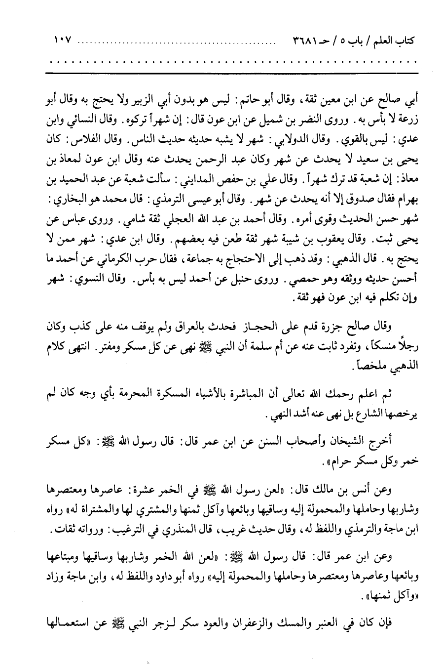 أَخْرَجَ الشَّيْخَانِ وَأَصْحَابُ السُّنَنِ عَنِ بن عمر قال قال رسول الله كُلُّ مُسْكِرٍ خَمْرٌ وَكُلُّ مُسْكِرٍ حَرَامٌ