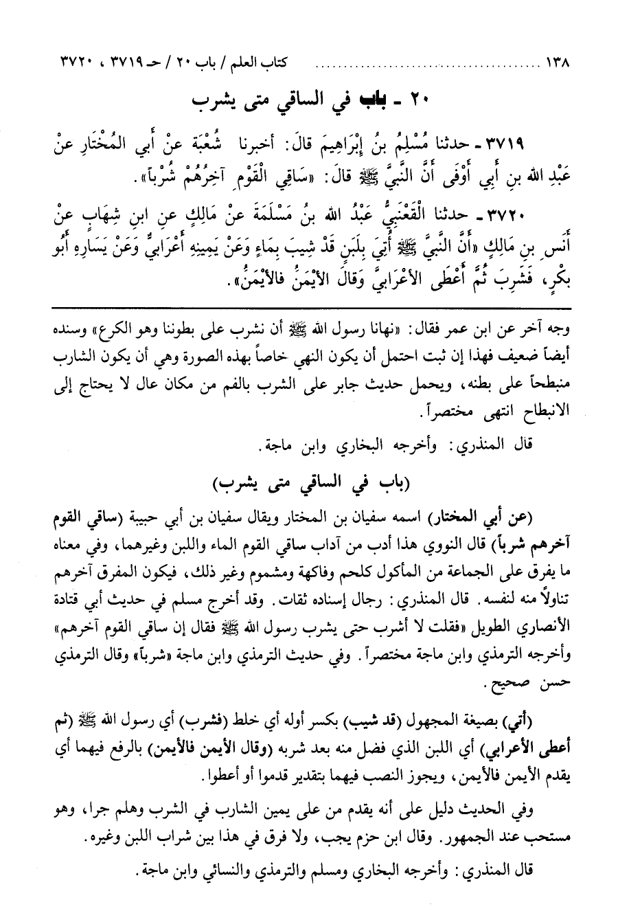 3 - (بَاب فِي السَّاقِي مَتَى يَشْرَبُ)