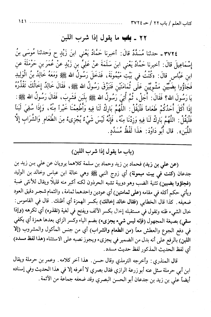 35 - (بَاب مَا يَقُولُ إِذَا شَرِبَ اللَّبَنَ)