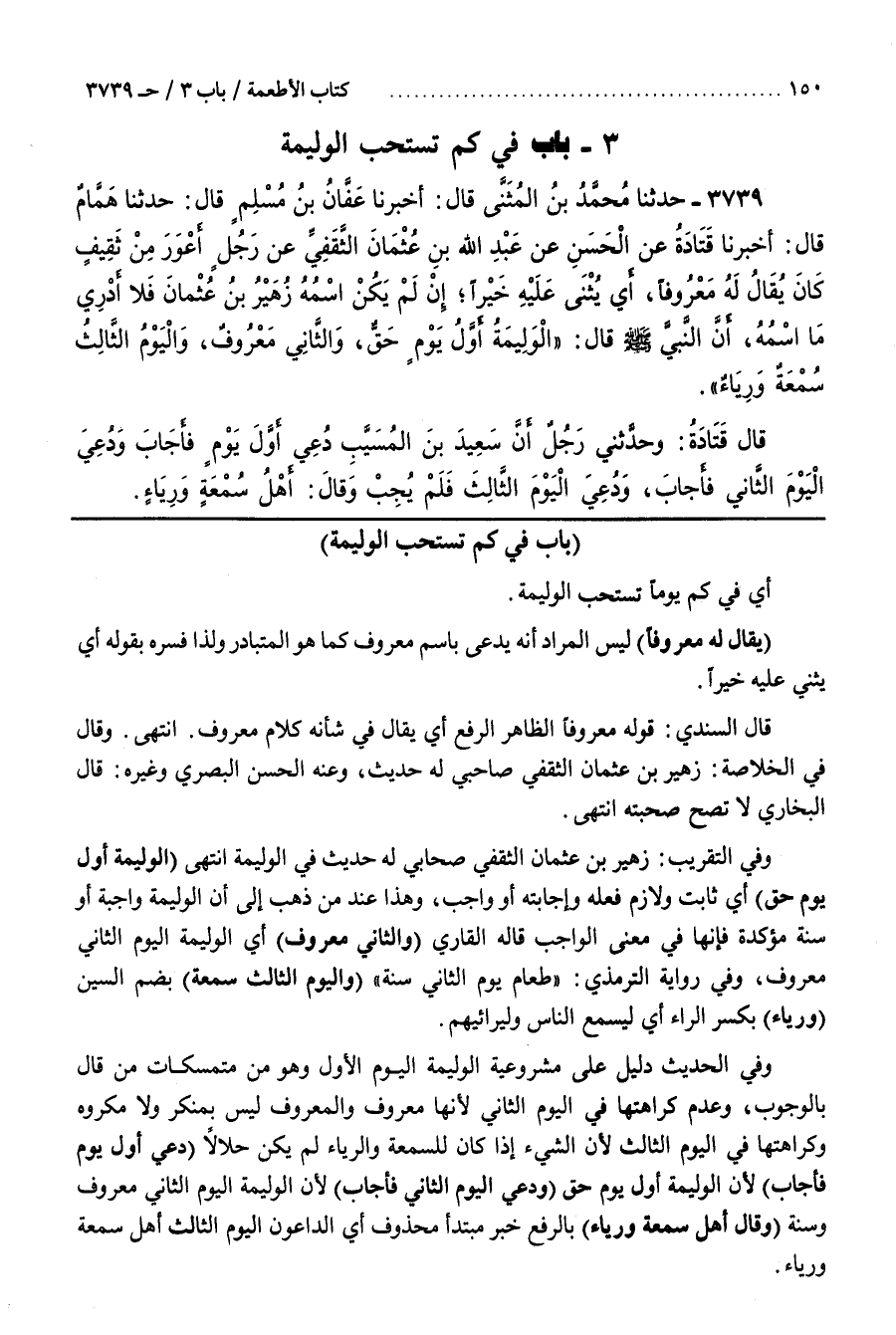 [3745] يُسْتَحَبُّ الْوَلِيمَةُ