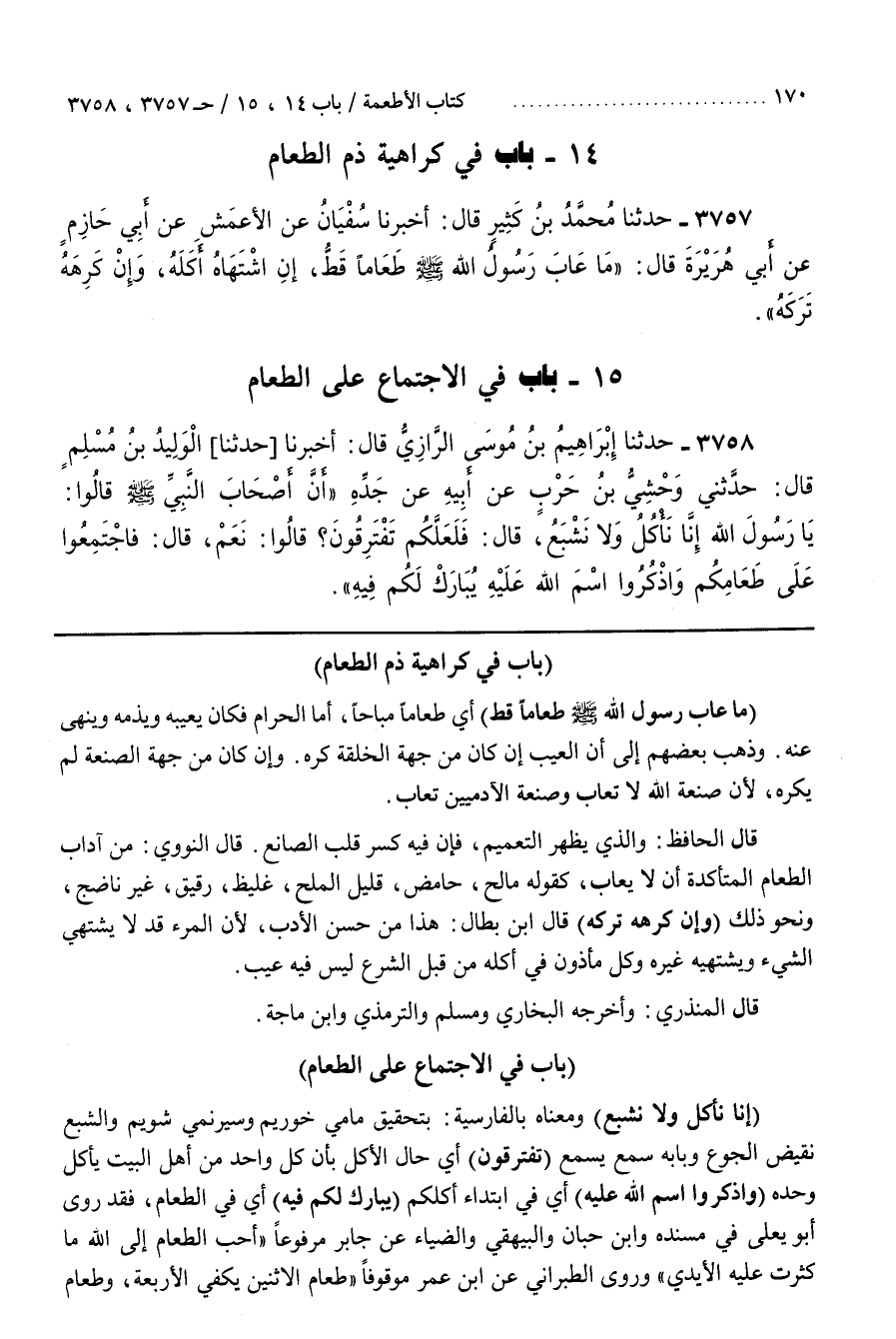 14 - (بَاب فِي كَرَاهِيَةِ ذَمِّ الطَّعَامِ)