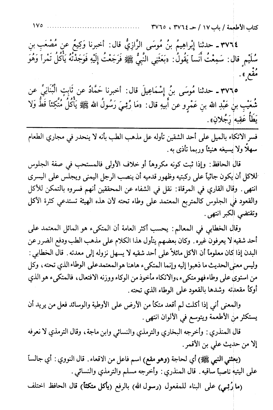 [3771] (مارؤي) عَلَى الْبِنَاءِ لِلْمَفْعُولِ (رَسُولُ اللَّهِ صَلَّى اللَّهُ عَلَيْهِ وَسَلَّمَ) بِالرَّفْعِ (يَأْكُلُ مُتَّكِئًا) قَالَ الْحَافِظُ اختلف