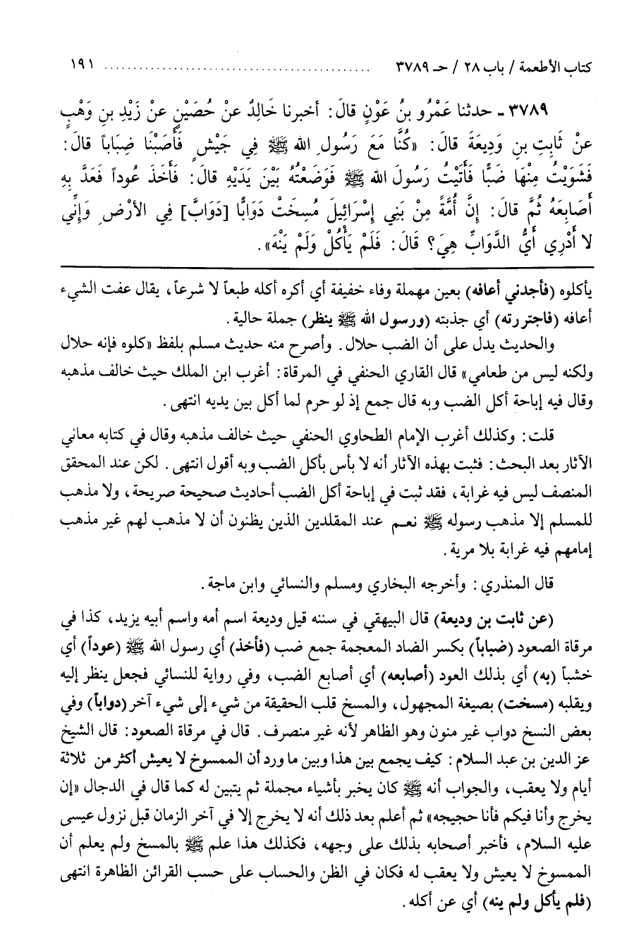 لَكِنْ عِنْدَ الْمُحَقِّقِ الْمُنْصِفِ لَيْسَ فِيهِ غَرَابَةٌ فَقَدْ ثَبَتَ فِي إِبَاحَةِ أَكْلِ الضَّبِّ أَحَادِيثُ صَحِيحَةٌ صَرِيحَةٌ وَلَا مَذْهَبَ لِلْمُسْلِمِ إِلَّا مَذْهَبَ رَسُولِهِ صَلَّى اللَّهُ عَلَيْهِ وَسَلَّمَ نَعَمْ